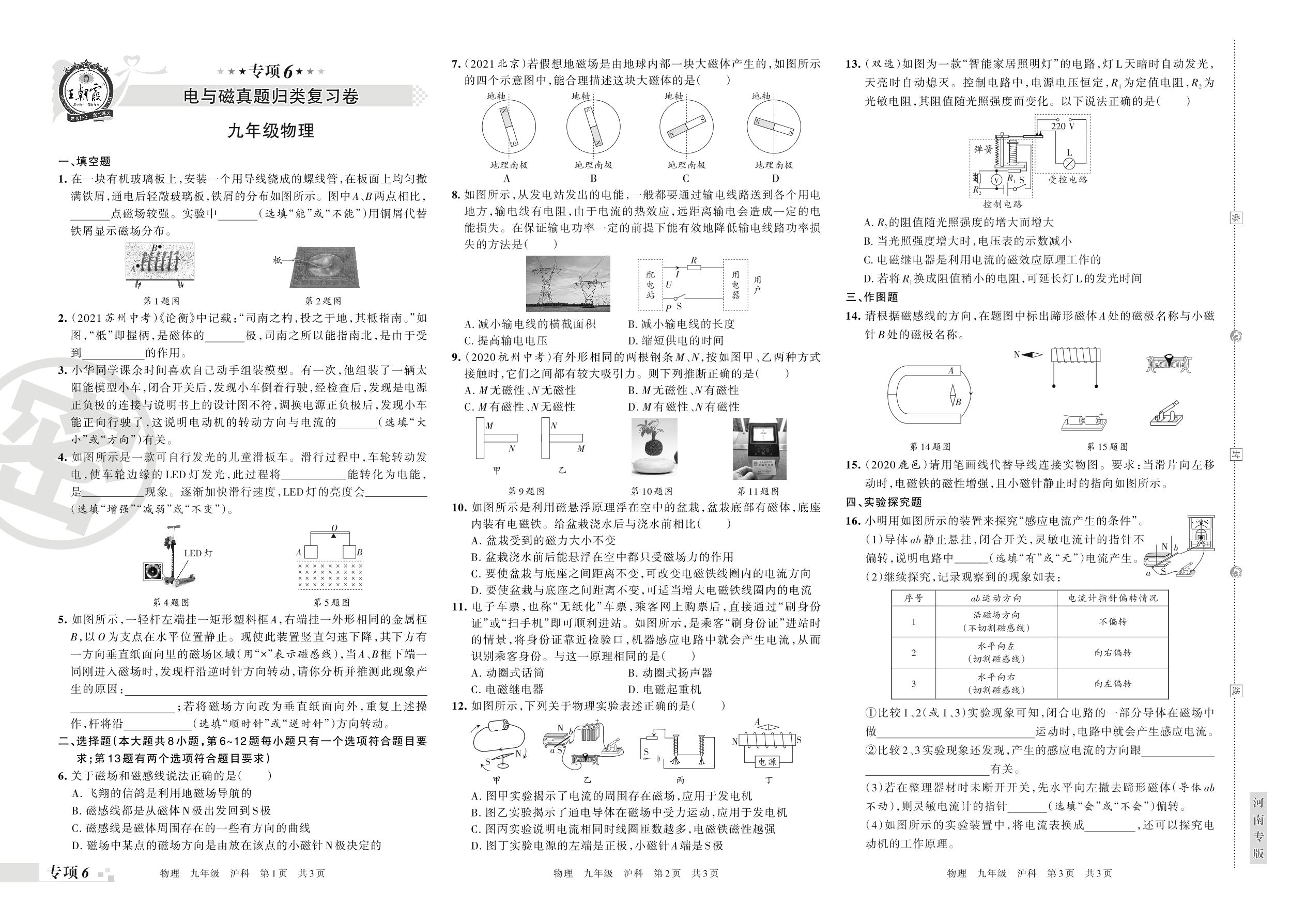 2021-2022学年第一学期王朝霞期末专项卷——电与磁真题归类复习卷九年级物理(沪科版)【6】
