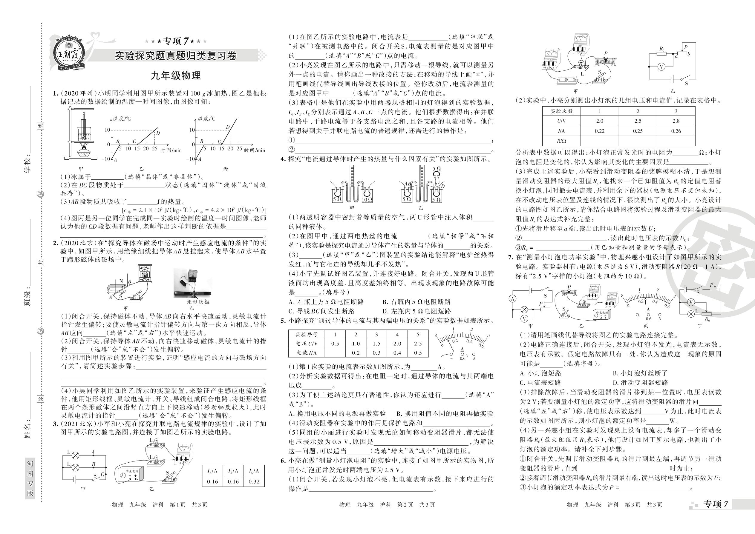 2021-2022学年第一学期王朝霞期末专项卷——实验探究题真题归类复习卷九年级物理(沪科版)【7】
