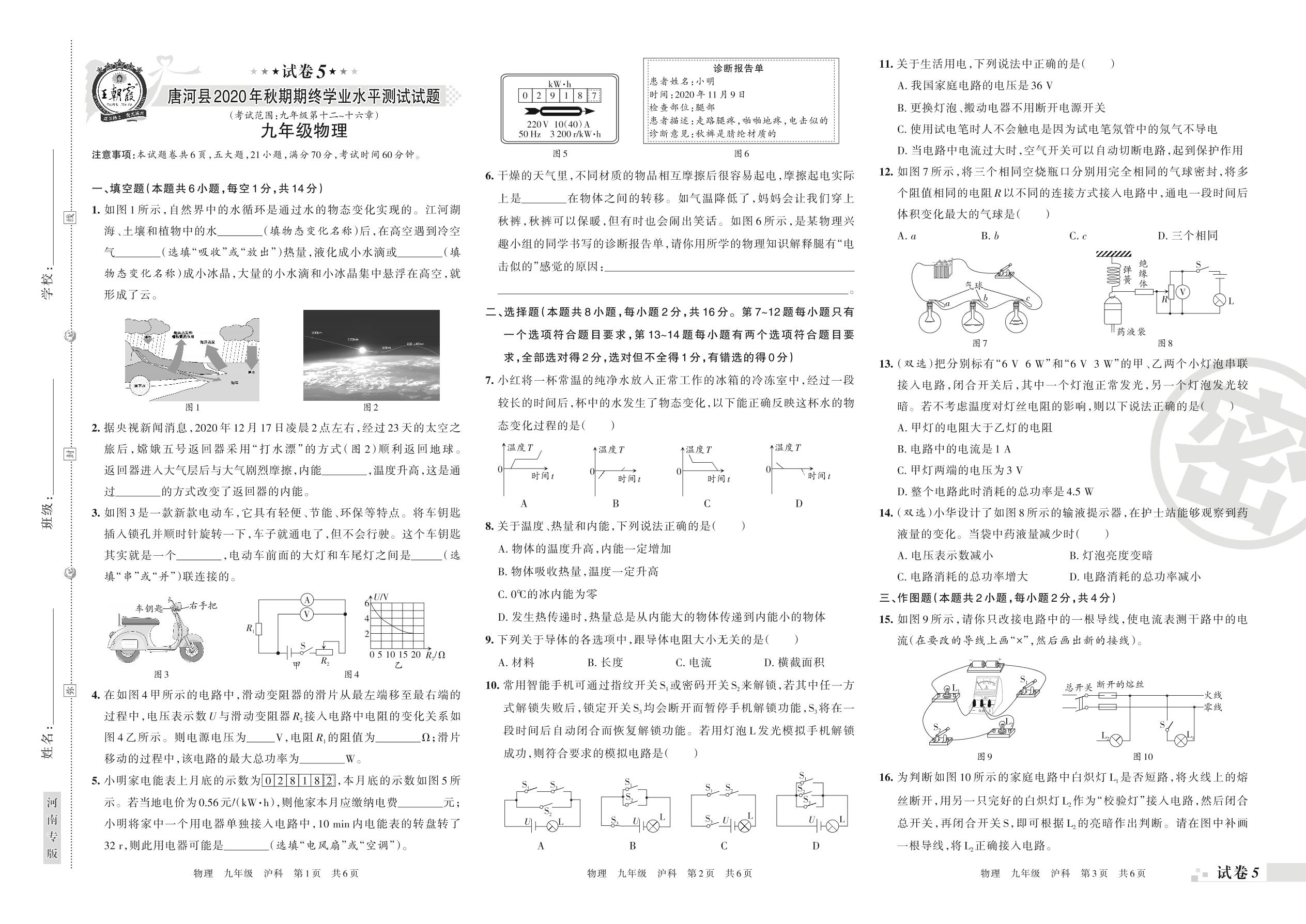 唐河县2020年秋期期终学业水平测试试题九年级物理(沪科版)【5】