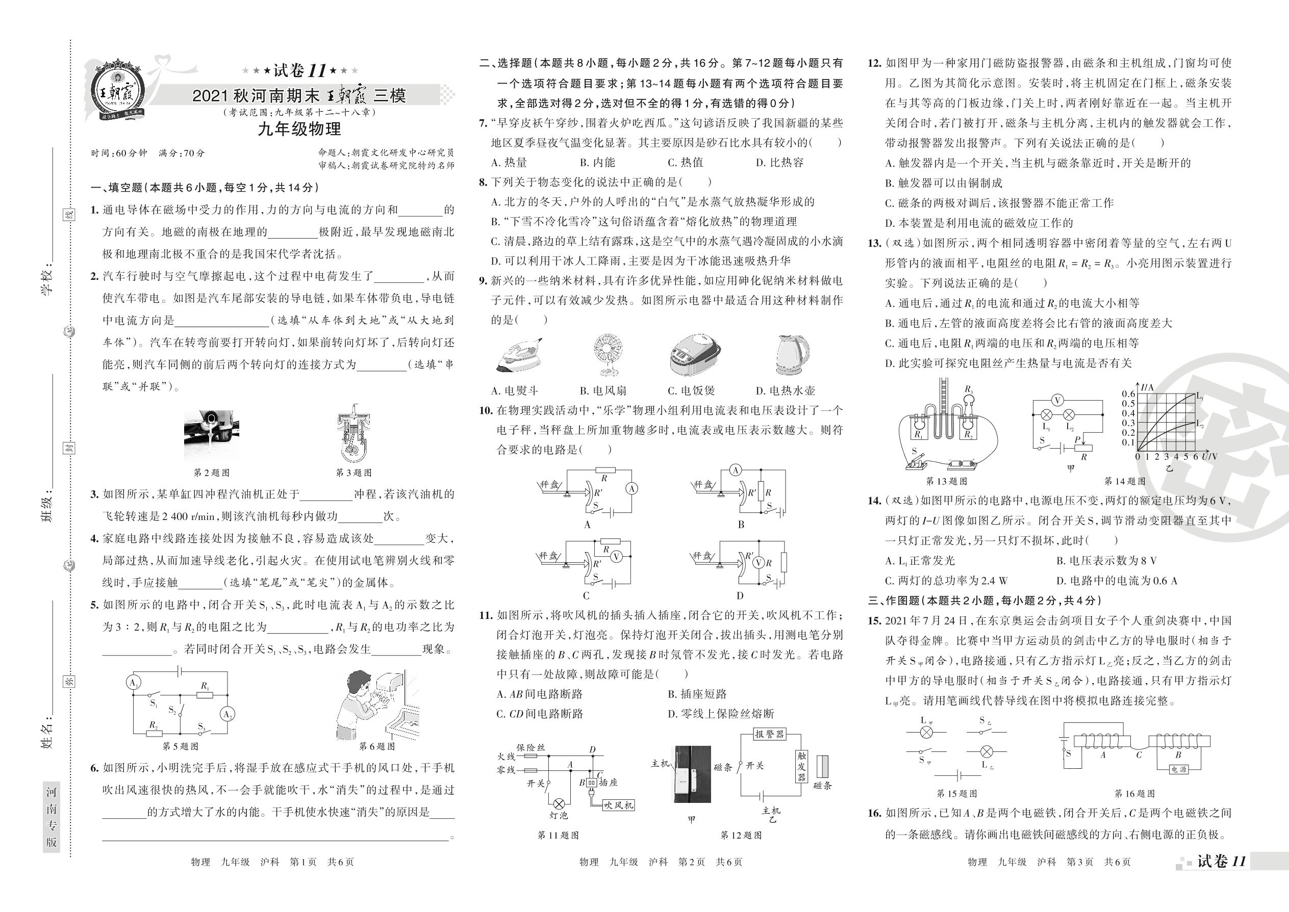 九年级物理沪科版全一册期末卷
