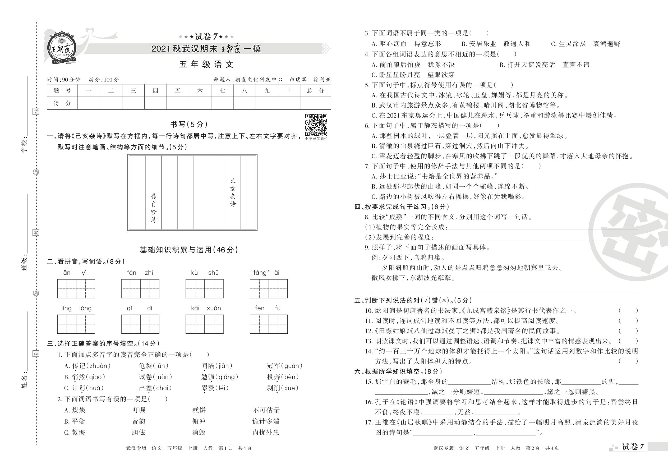 王朝霞期末模拟卷五年级上册语文(人教版)_R211224135556771【7】