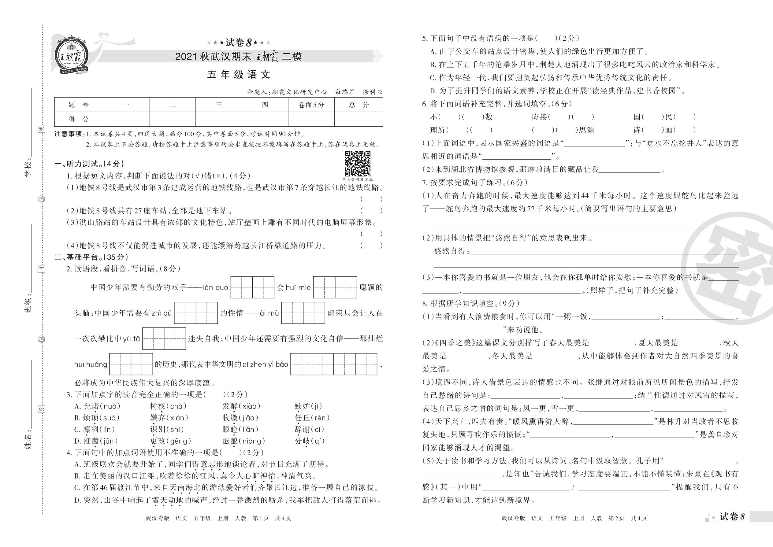 王朝霞期末模拟卷五年级上册语文(人教版)_R211224135556017【8】