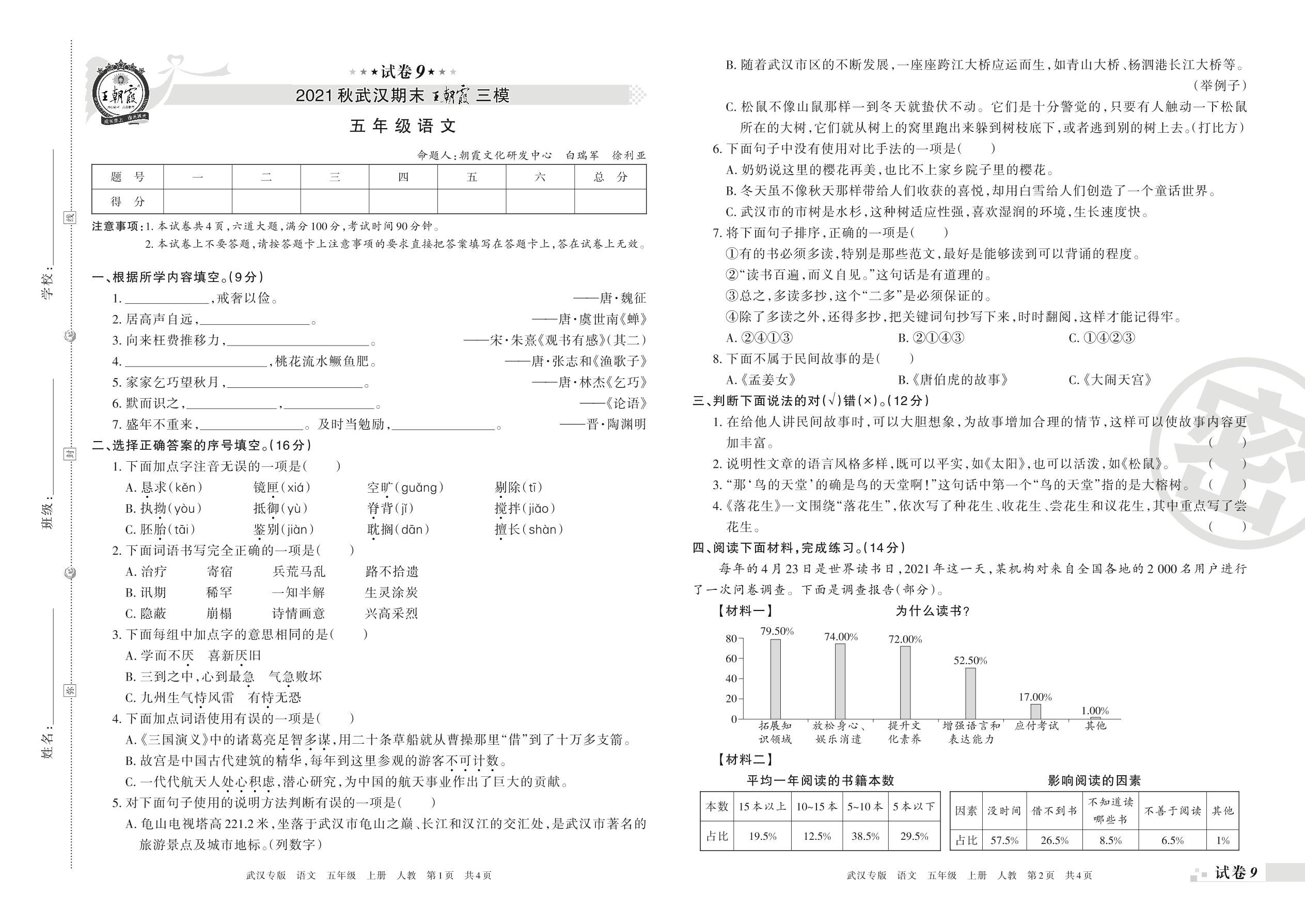 王朝霞期末模拟卷五年级上册语文(人教版)_R211224135556744【9】