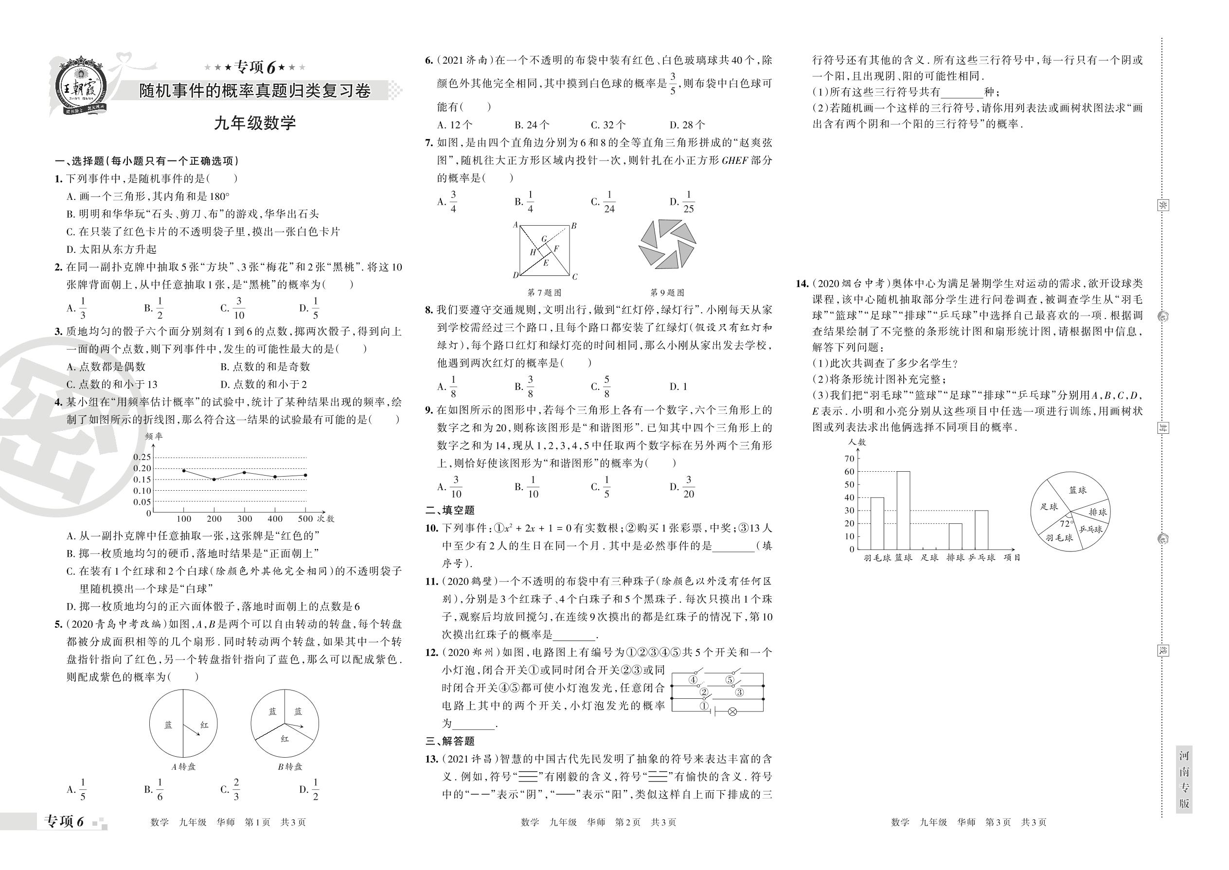 2021-2022学年第一学期王朝霞期末专项卷——随机事件的概率真题归类复习卷九年级数学(华师版)【6】