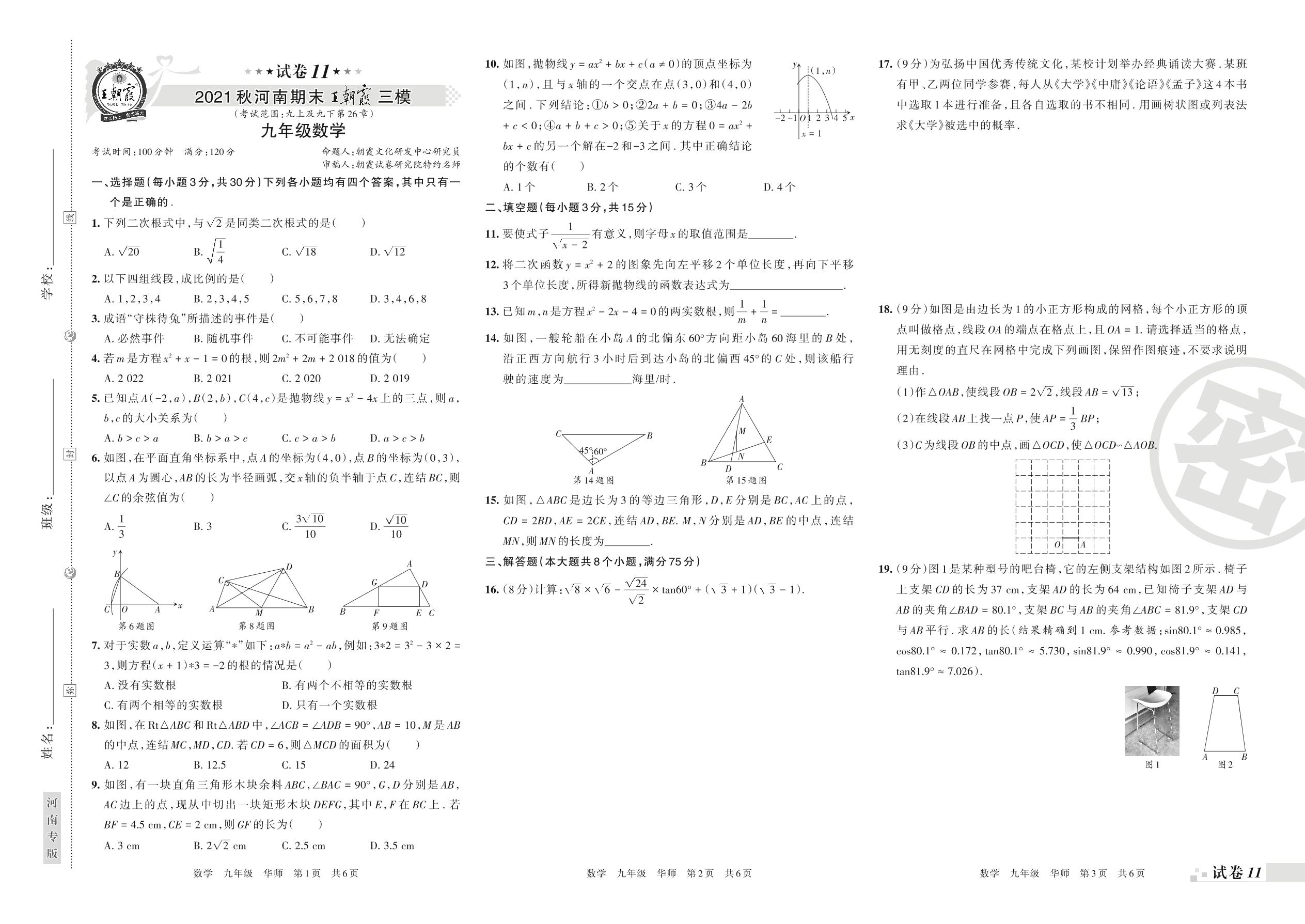2021-2022学年第一学期王朝霞期末模拟卷九年级数学(华师版)【11】