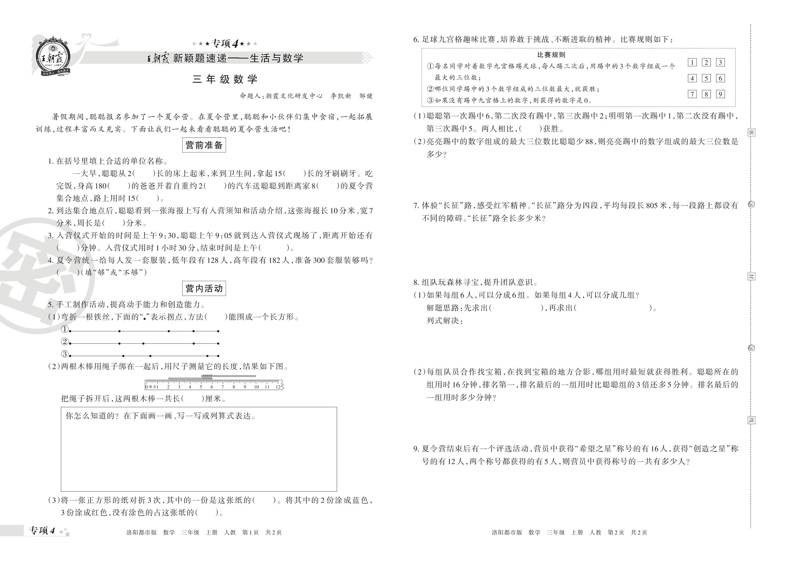王朝霞期末专项卷——新颖题速递:生活与数学三年级上册数学(人教版)_R211224135629959【4】