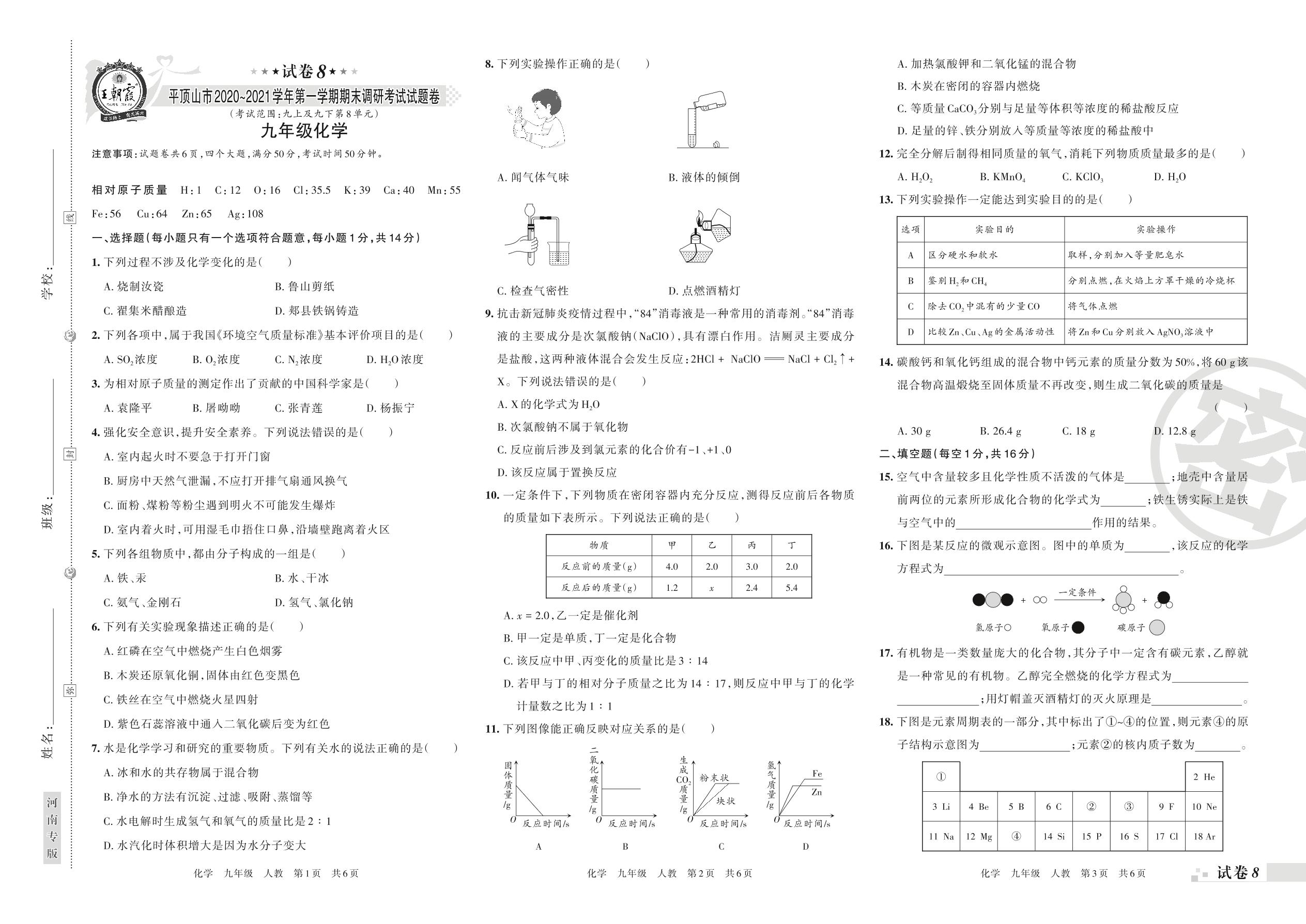 平顶山市2020~2021学年第一学期期末调研考试试题卷九年级化学(人教版)【8】
