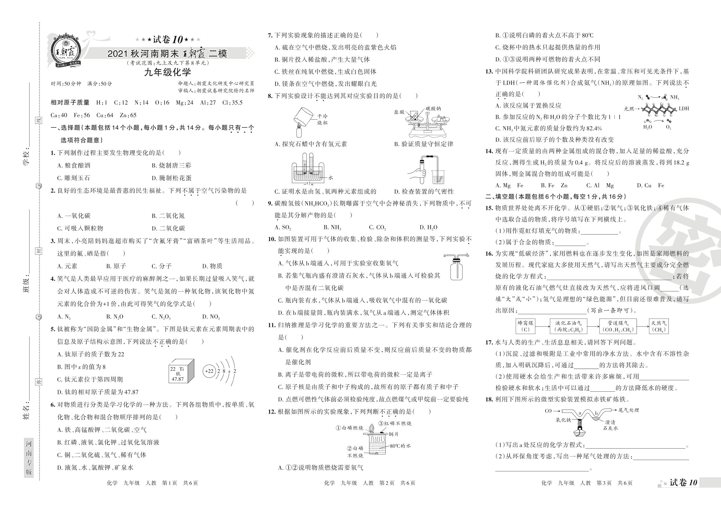 2021-2022学年第一学期王朝霞期末模拟卷九年级化学(人教版)_R211224140004580【10】