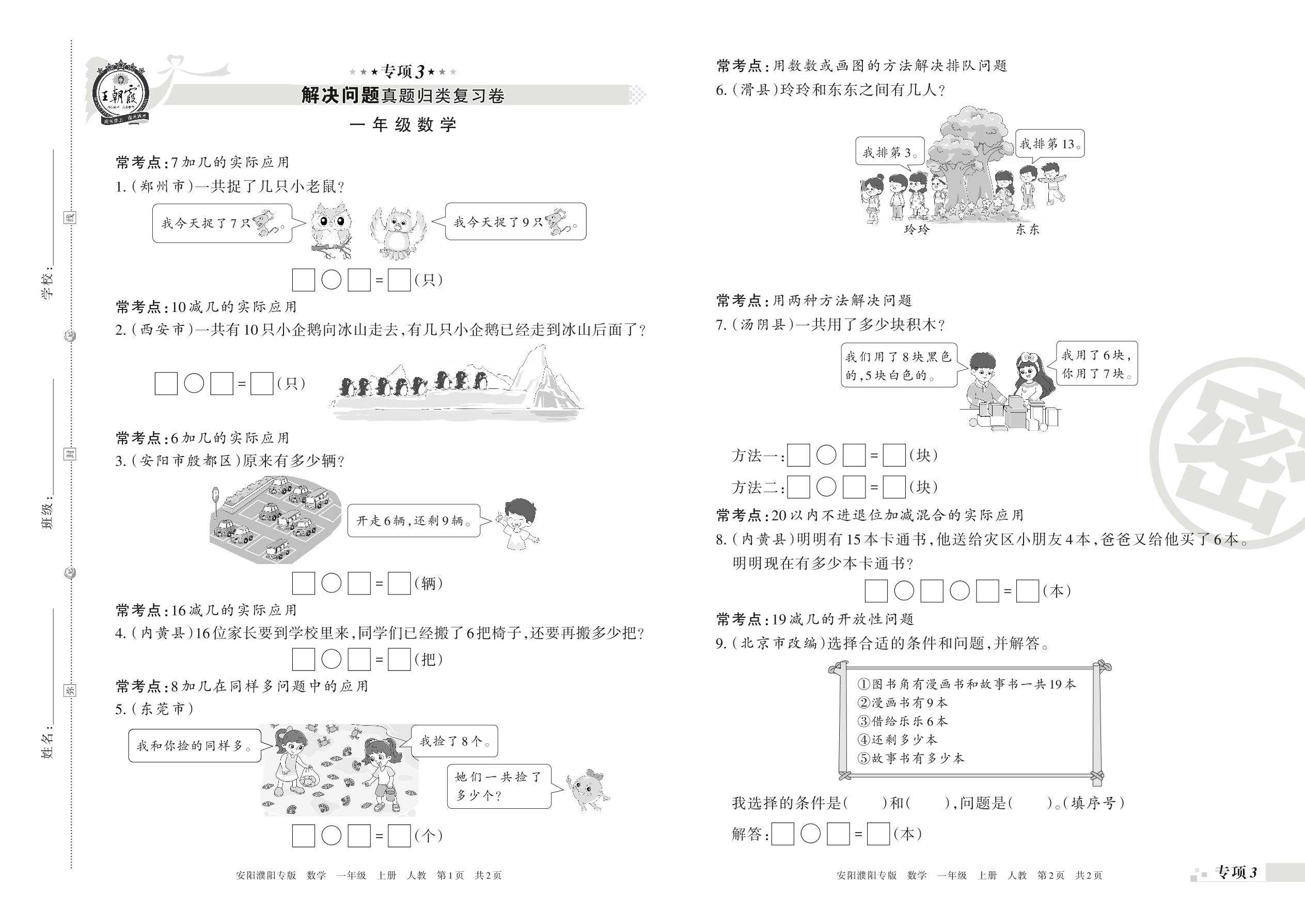 王朝霞期末专项卷——解决问题真题归类复习卷一年级上册数学(人教版)_R211224140321290【3】