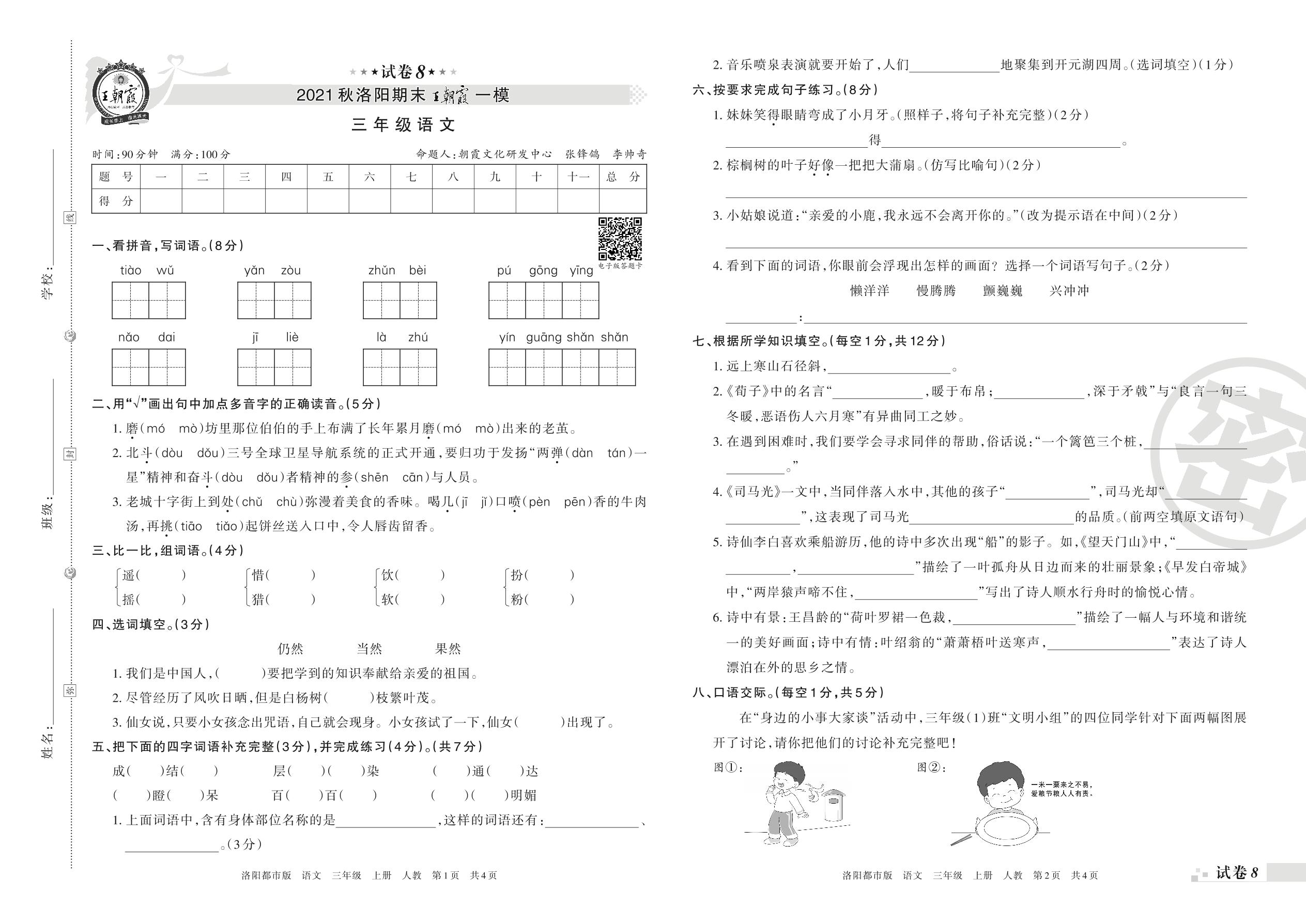 王朝霞期末模拟卷三年级上册语文(人教版)_R211224140400606【8】