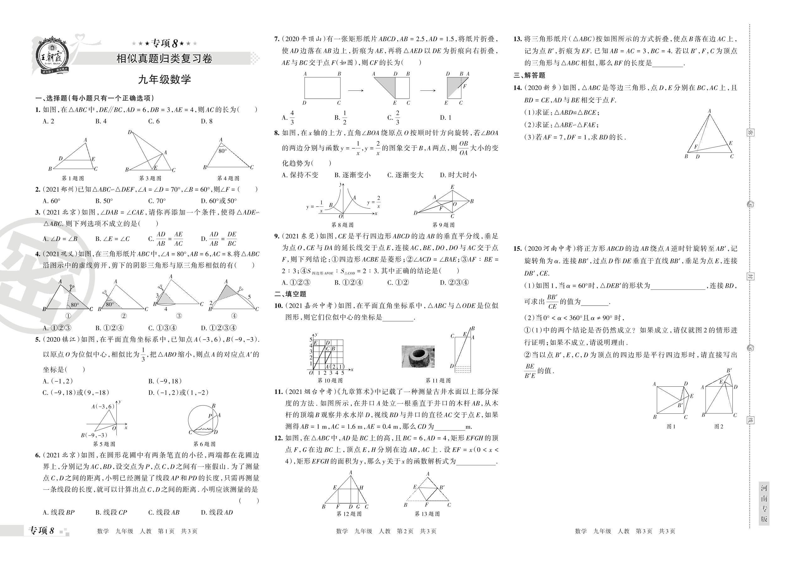 2021-2022学年第一学期王朝霞期末专项卷——相似真题归类复习卷九年级数学(人教版)【8】