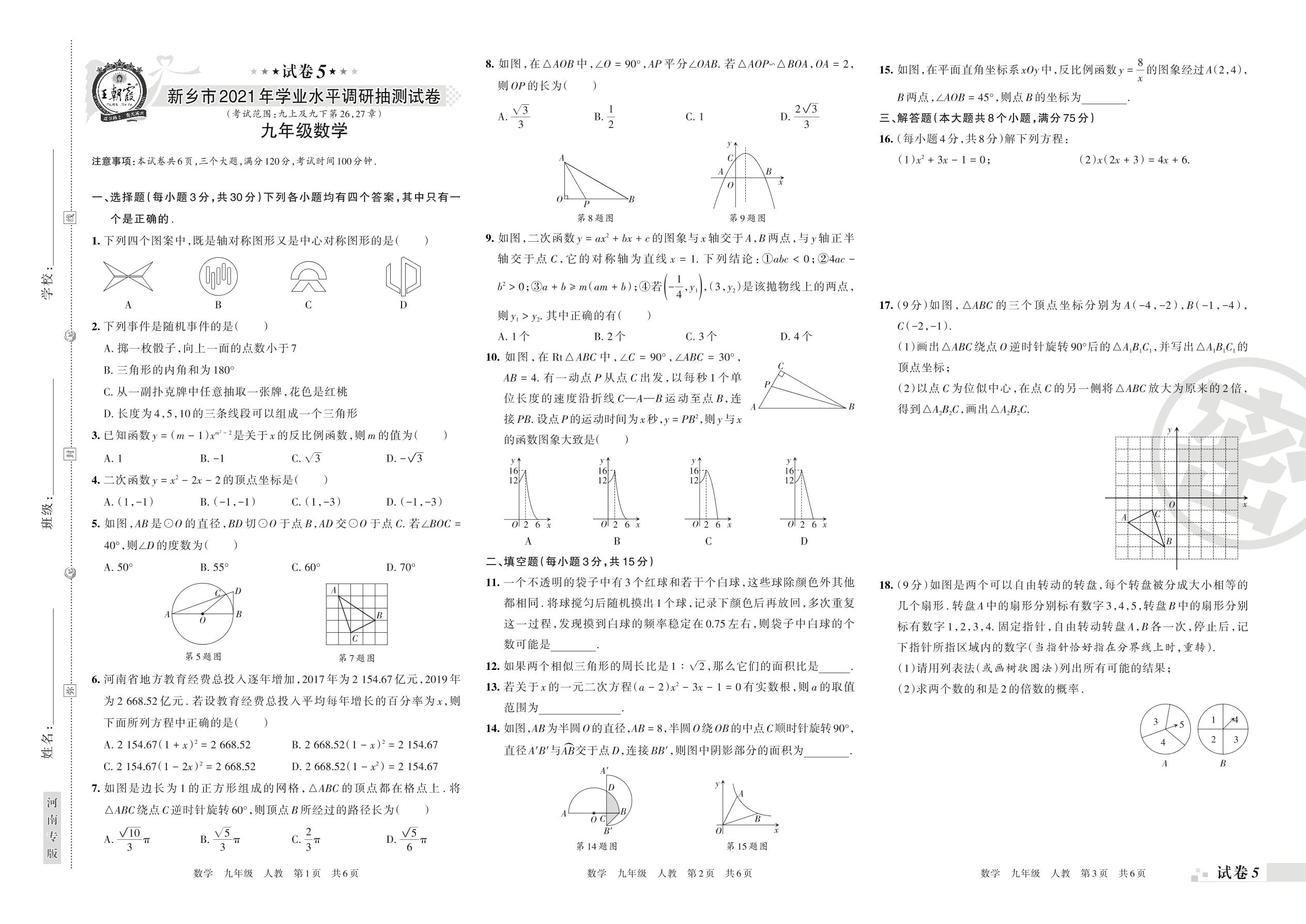 新乡市2021年学业水平调研抽测试卷九年级数学(人教版)【5】