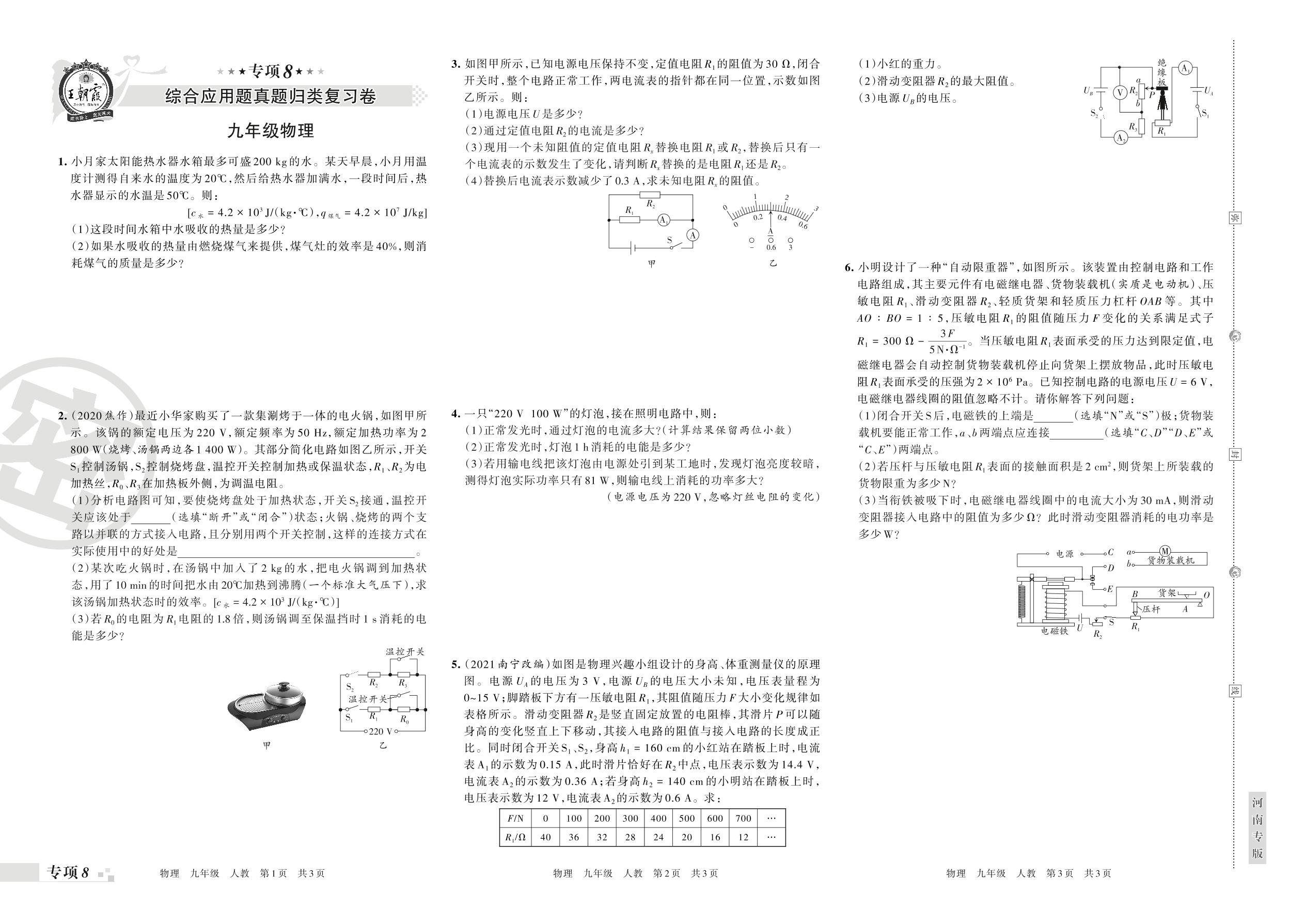 2021-2022学年第一学期王朝霞期末专项卷——综合应用题真题归类复习卷九年级物理(人教版)【8】