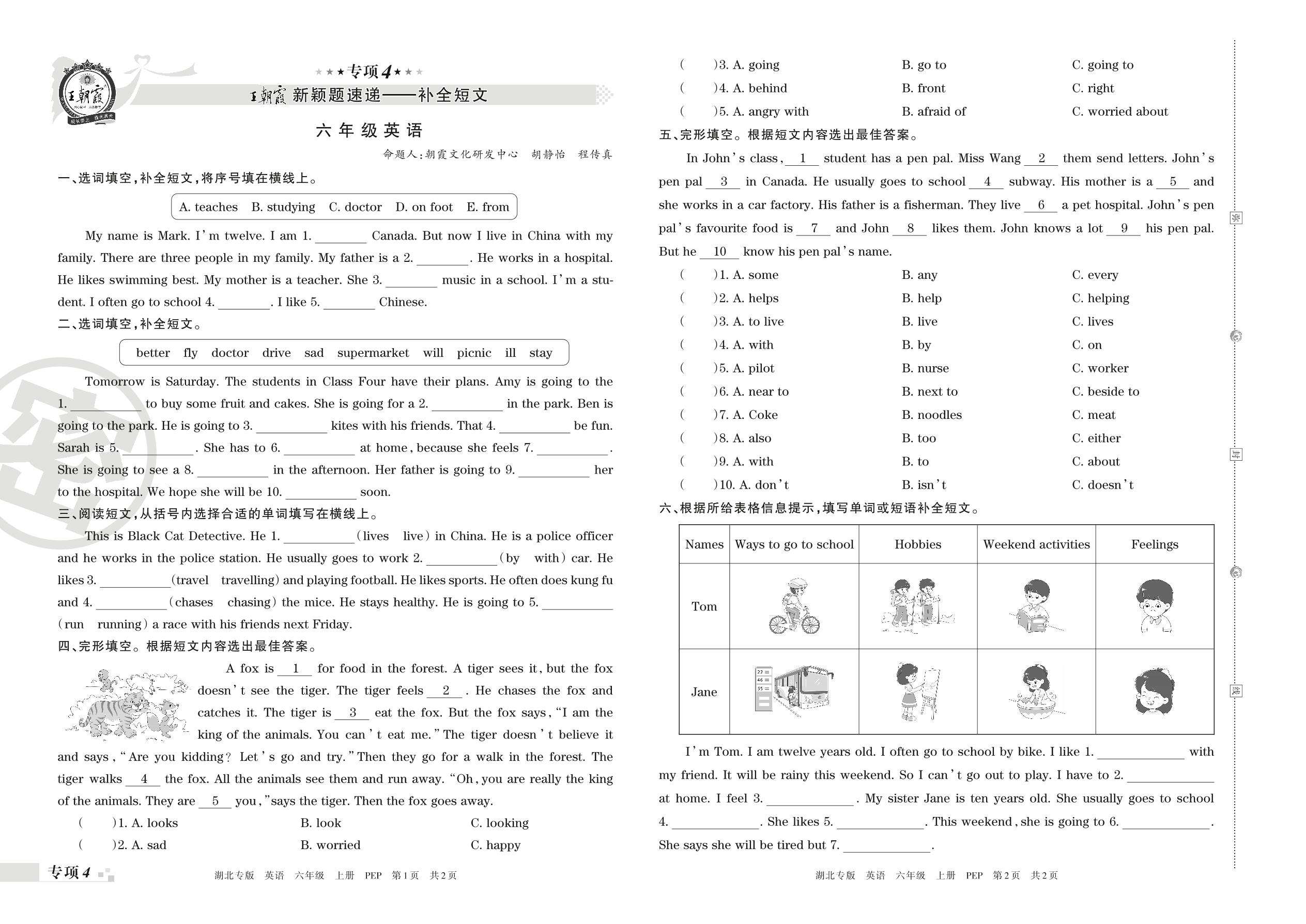 王朝霞期末专项卷——新颖题速递:补全短文六年级上册英语(人教PEP版)【4】