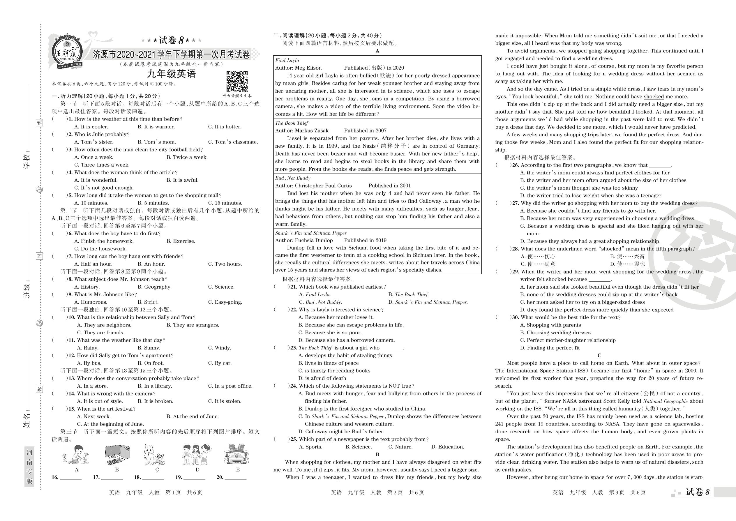 济源市2020~2021学年下学期第一次月考试卷九年级英语(人教版)【8】