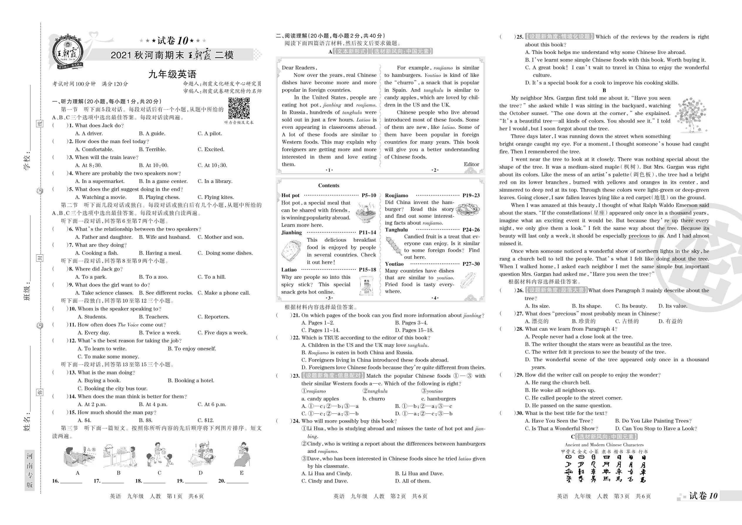 2021-2022学年第一学期王朝霞期末模拟卷九年级英语(人教版)_R211224141141224【10】