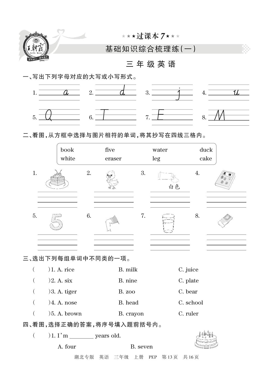 王朝霞期末过课本——基础知识综合梳理练(一)三年级上册英语(人教PEP版)_R211224141549428【7】