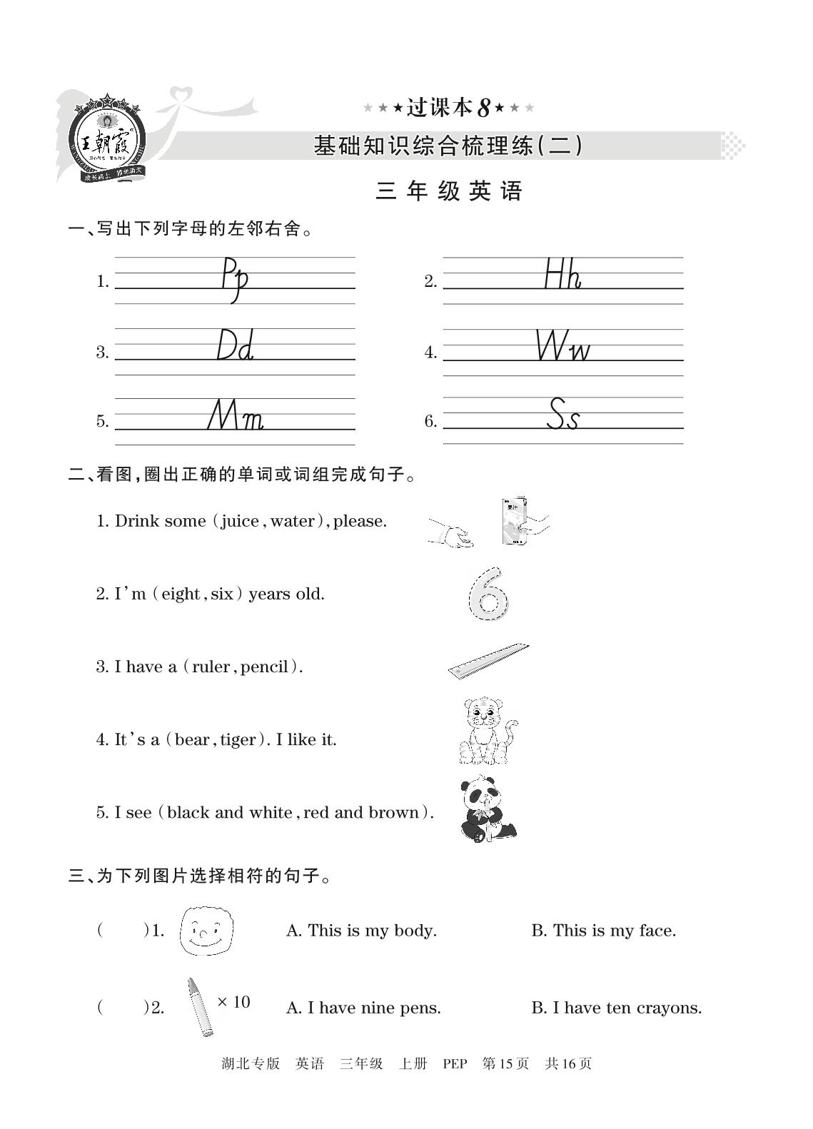 王朝霞期末过课本——基础知识综合梳理练(二)三年级上册英语(人教PEP版)_R211224141549560【8】