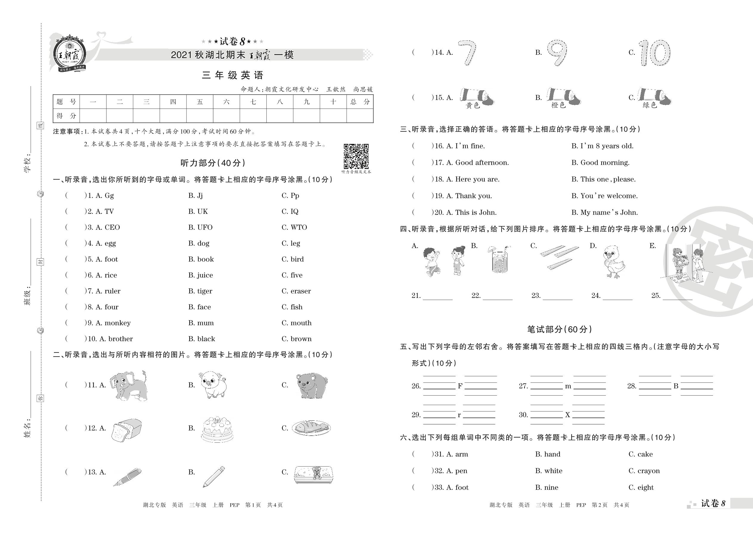 王朝霞期末模拟卷三年级上册英语(人教PEP版)_R211224141550883【8】