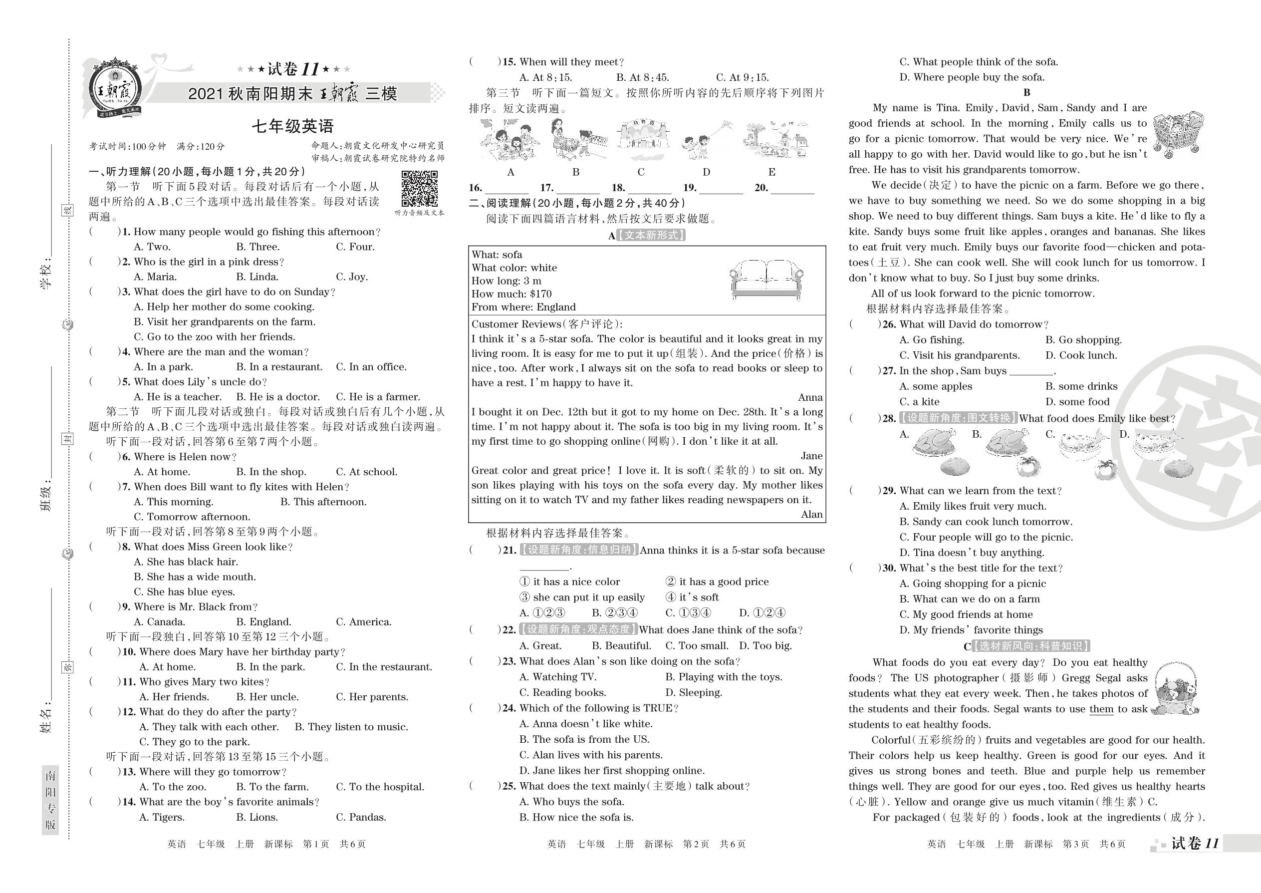 王朝霞期末模拟卷七年级上册英语(新课标版)_R211224141941059【11】