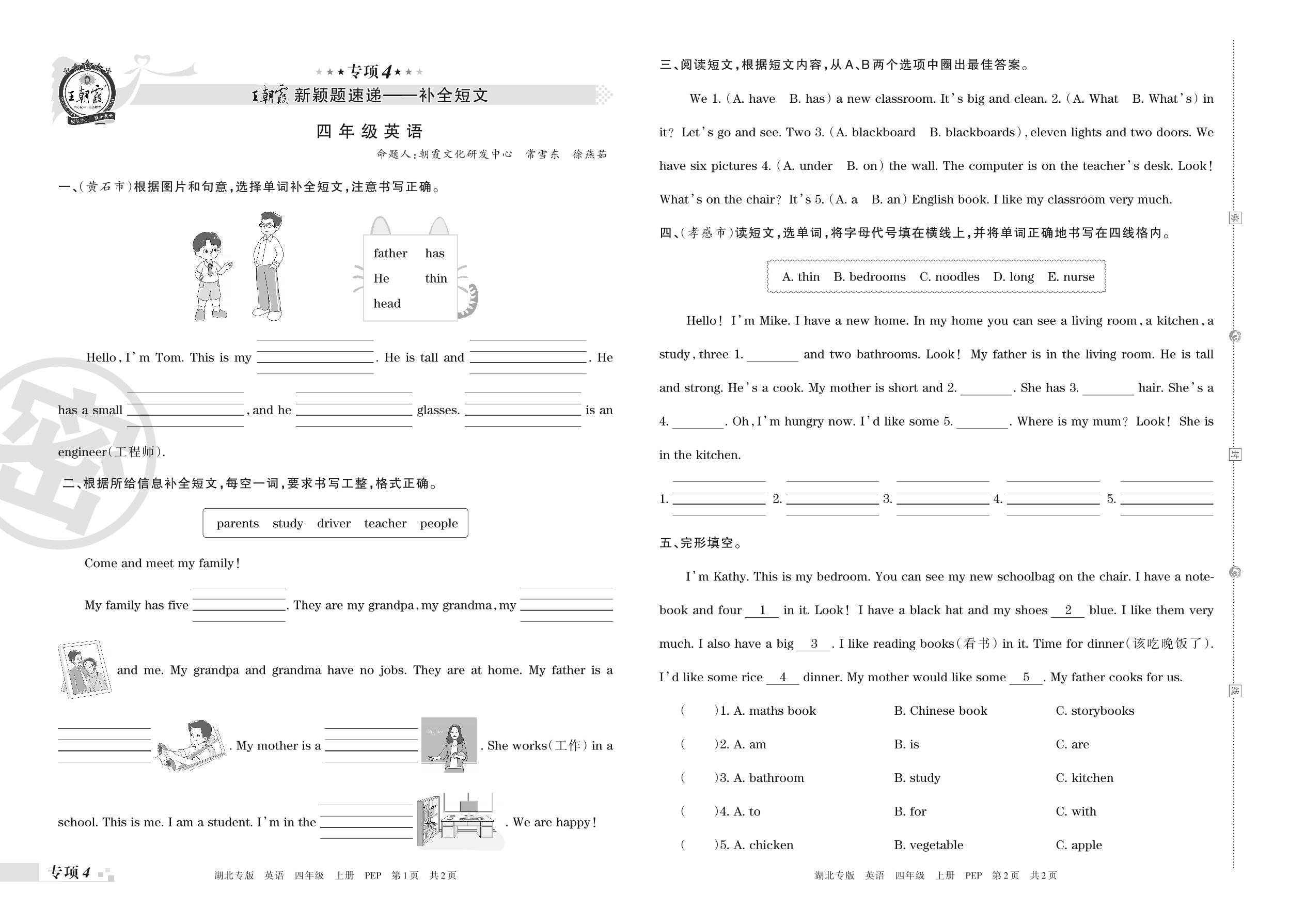王朝霞期末专项卷——新颖题速递:补全短文四年级上册英语(人教PEP版)【4】