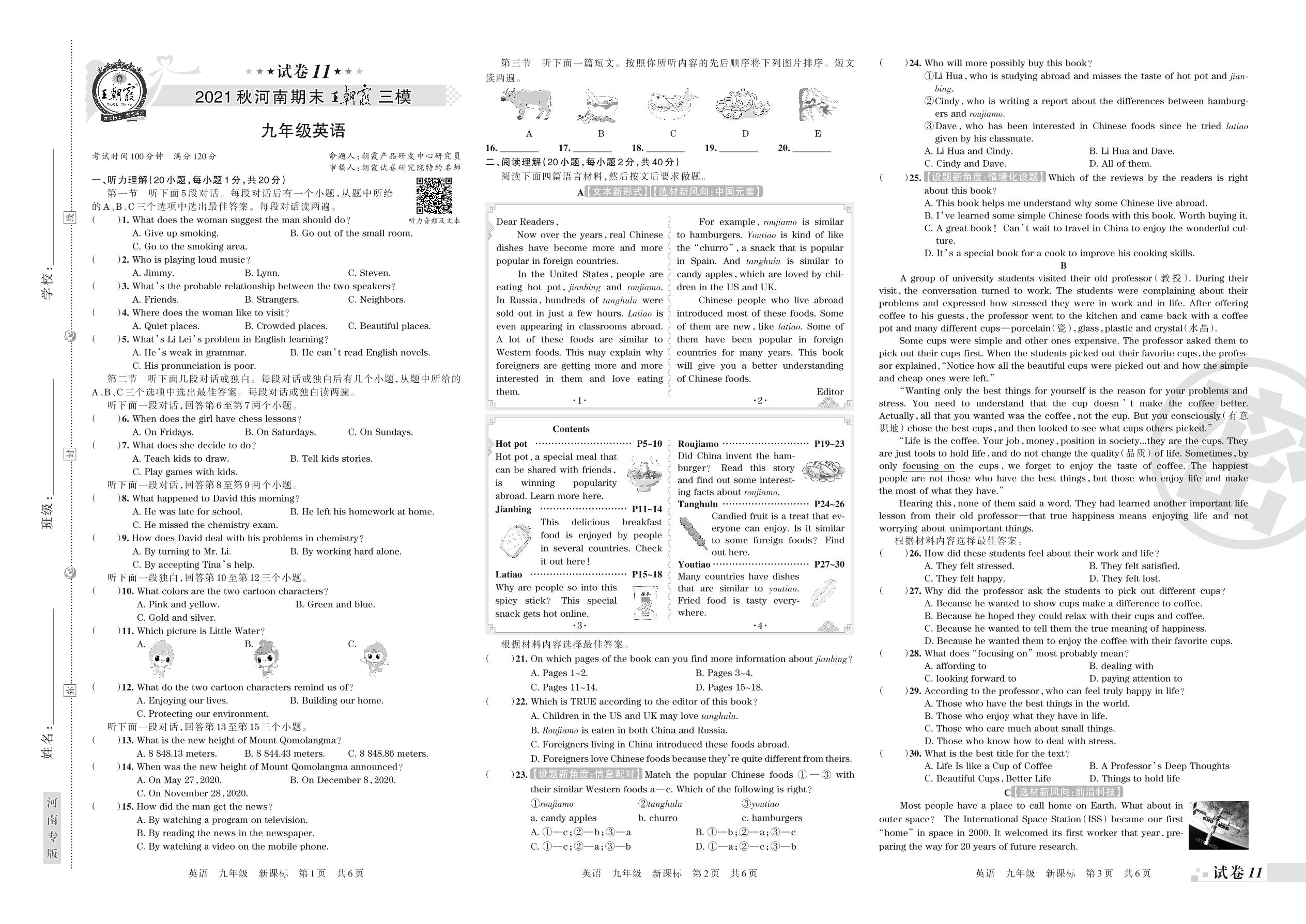 2021-2022学年第一学期王朝霞期末模拟卷九年级英语(新课标版)【11】