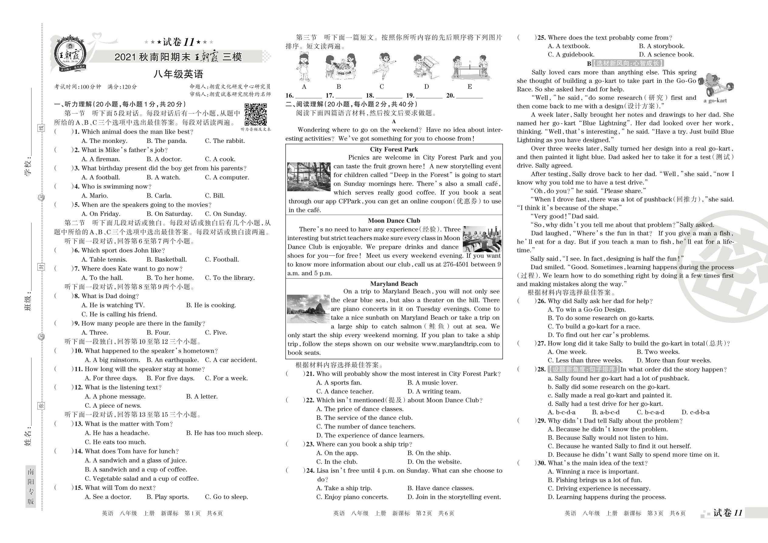 王朝霞期末模拟卷八年级上册英语(新课标版)【11】