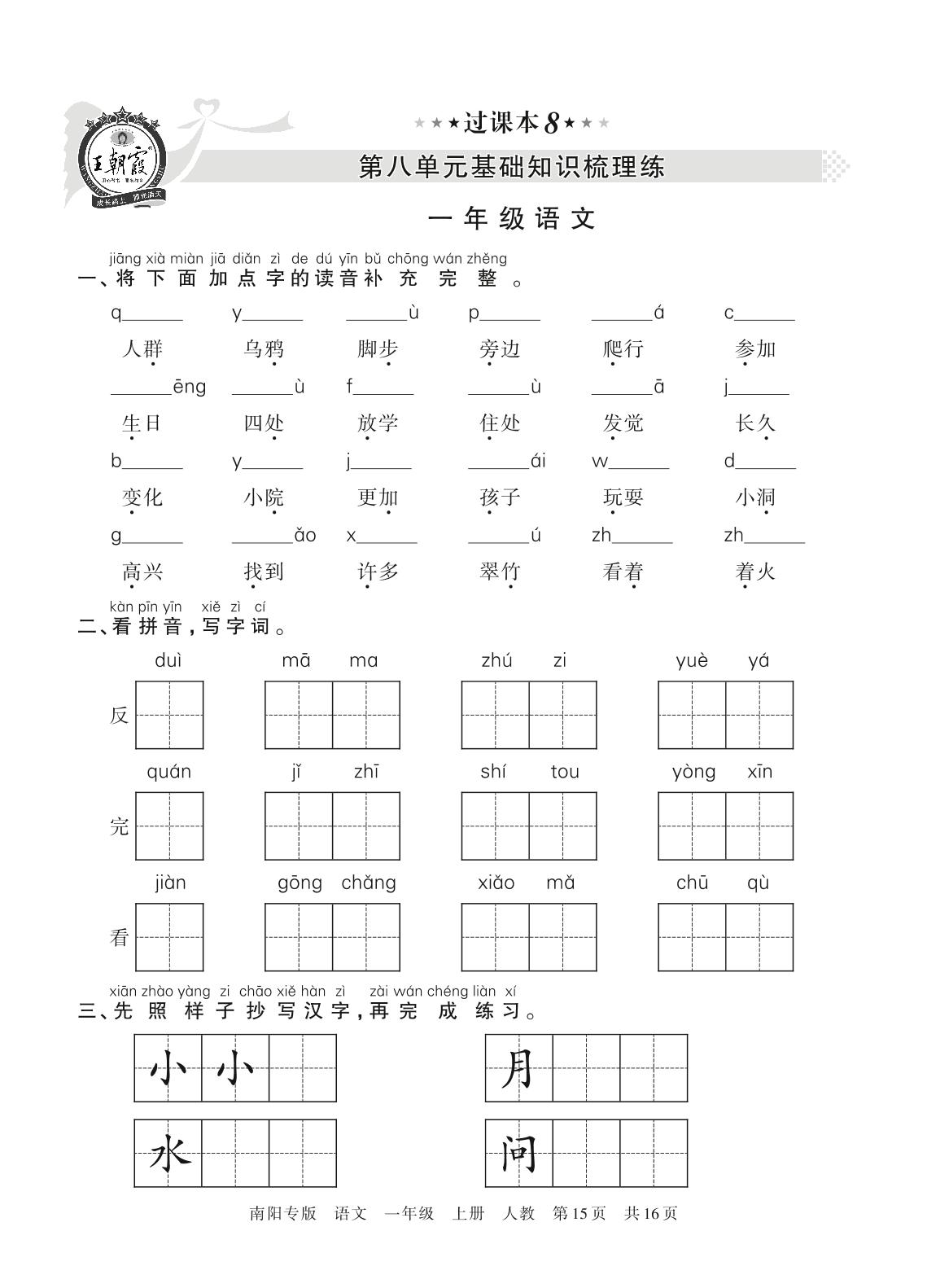 王朝霞期末过课本——第八单元基础知识梳理练一年级上册语文(人教版)_R211224143732585【8】