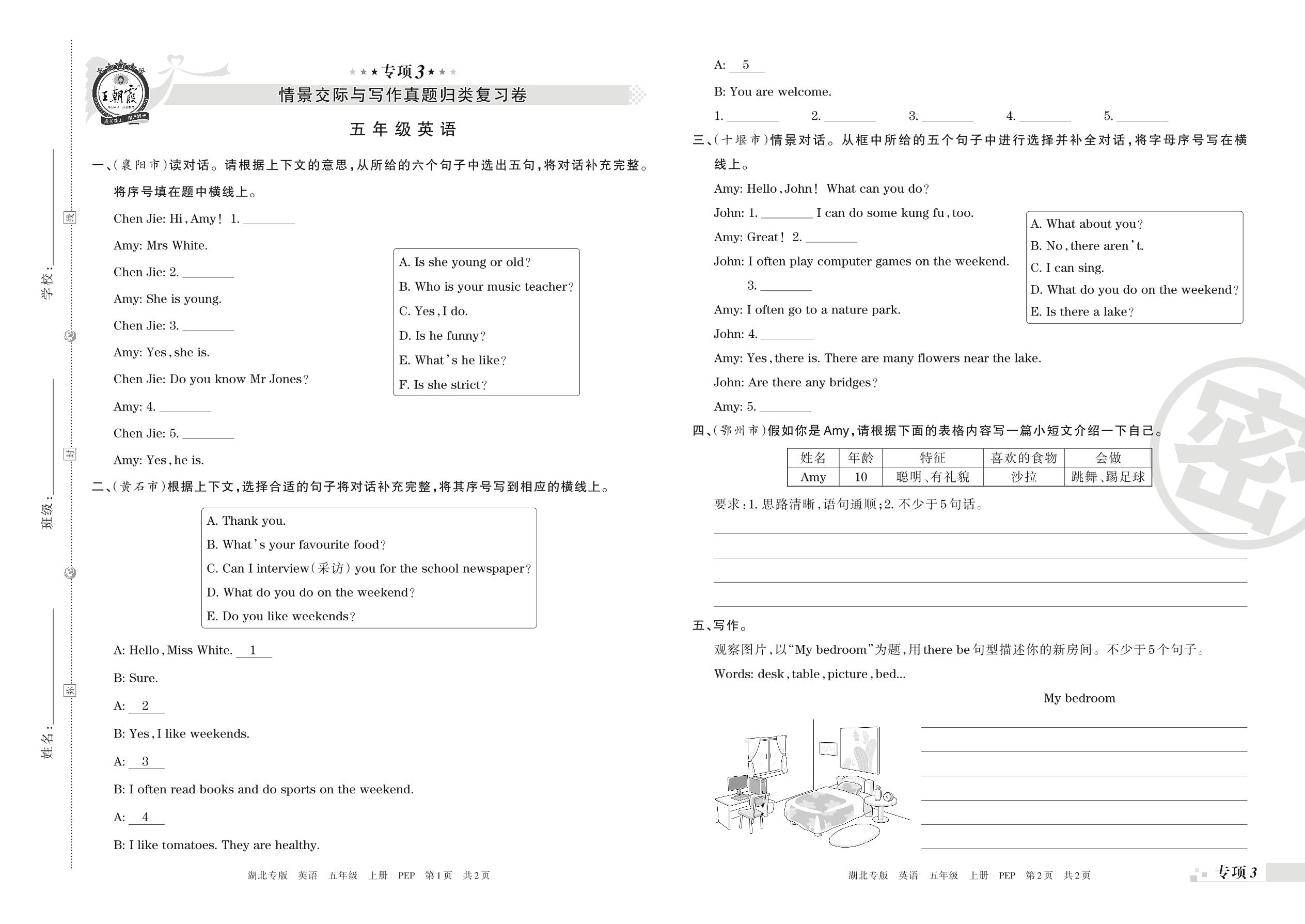 王朝霞期末专项卷——情景交际与写作真题归类复习卷五年级上册英语(人教PEP版)_R211224143803693【3】