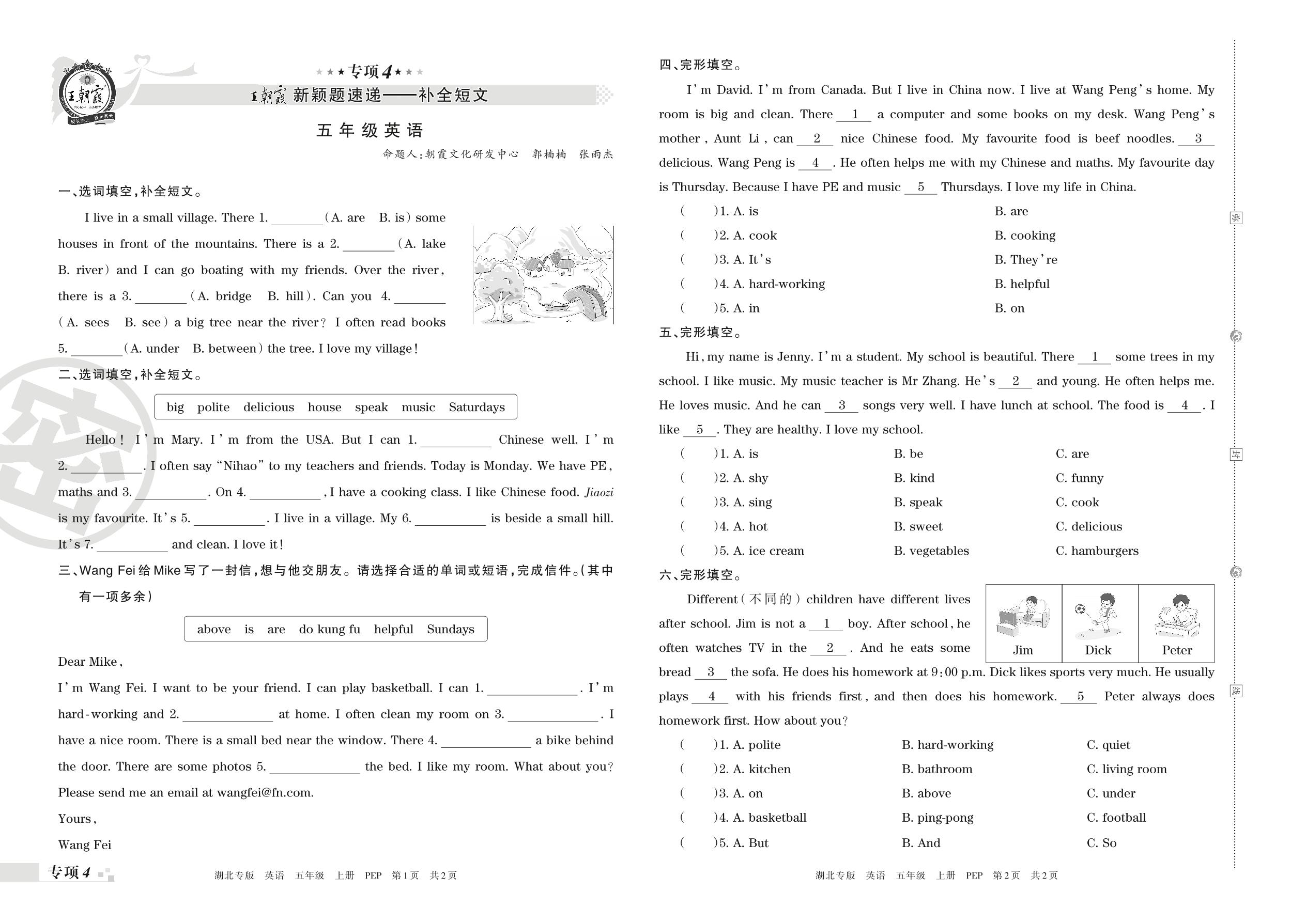 王朝霞期末专项卷——新颖题速递:补全短文五年级上册英语(人教PEP版)【4】