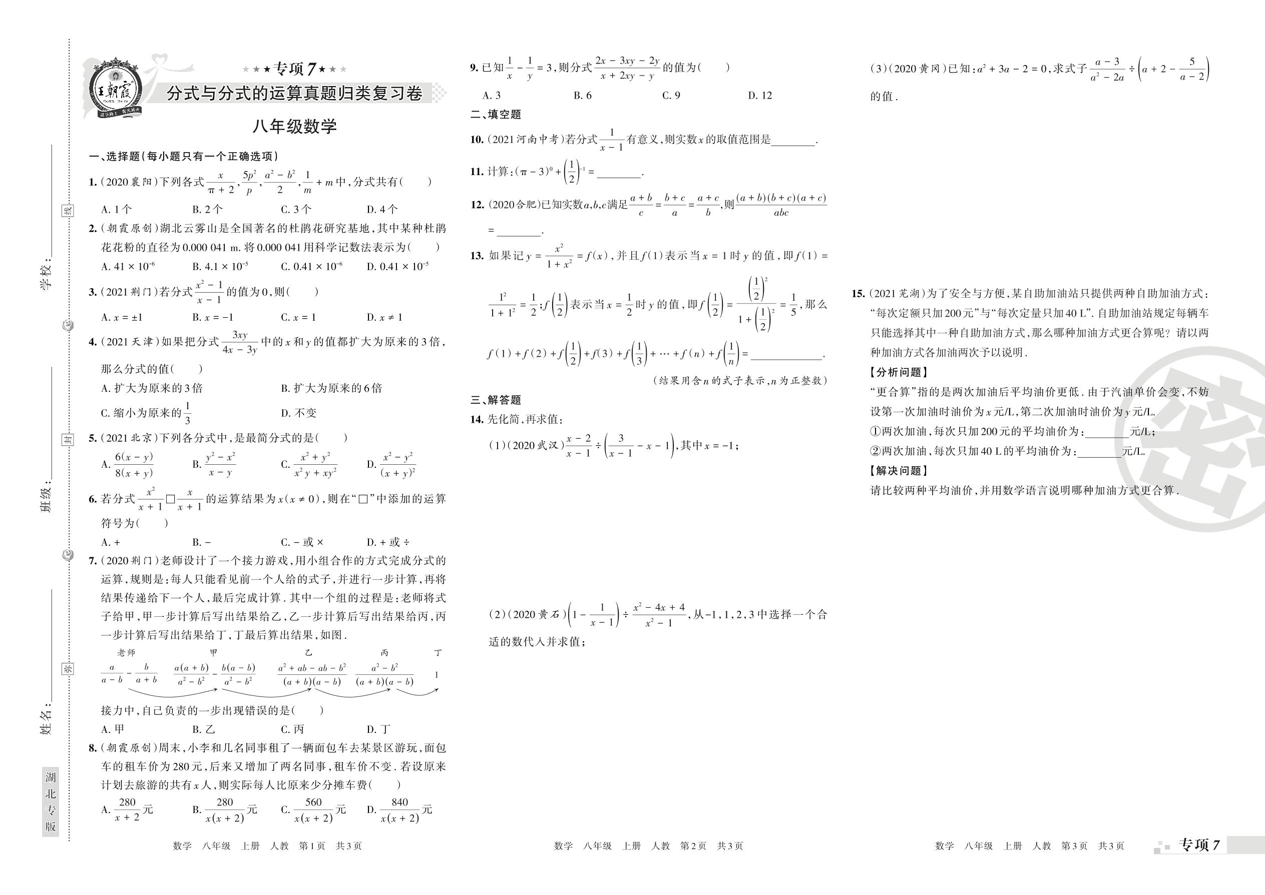 王朝霞期末专项卷——分式与分式的运算真题归类复习卷八年级上册数学(人教版)【7】