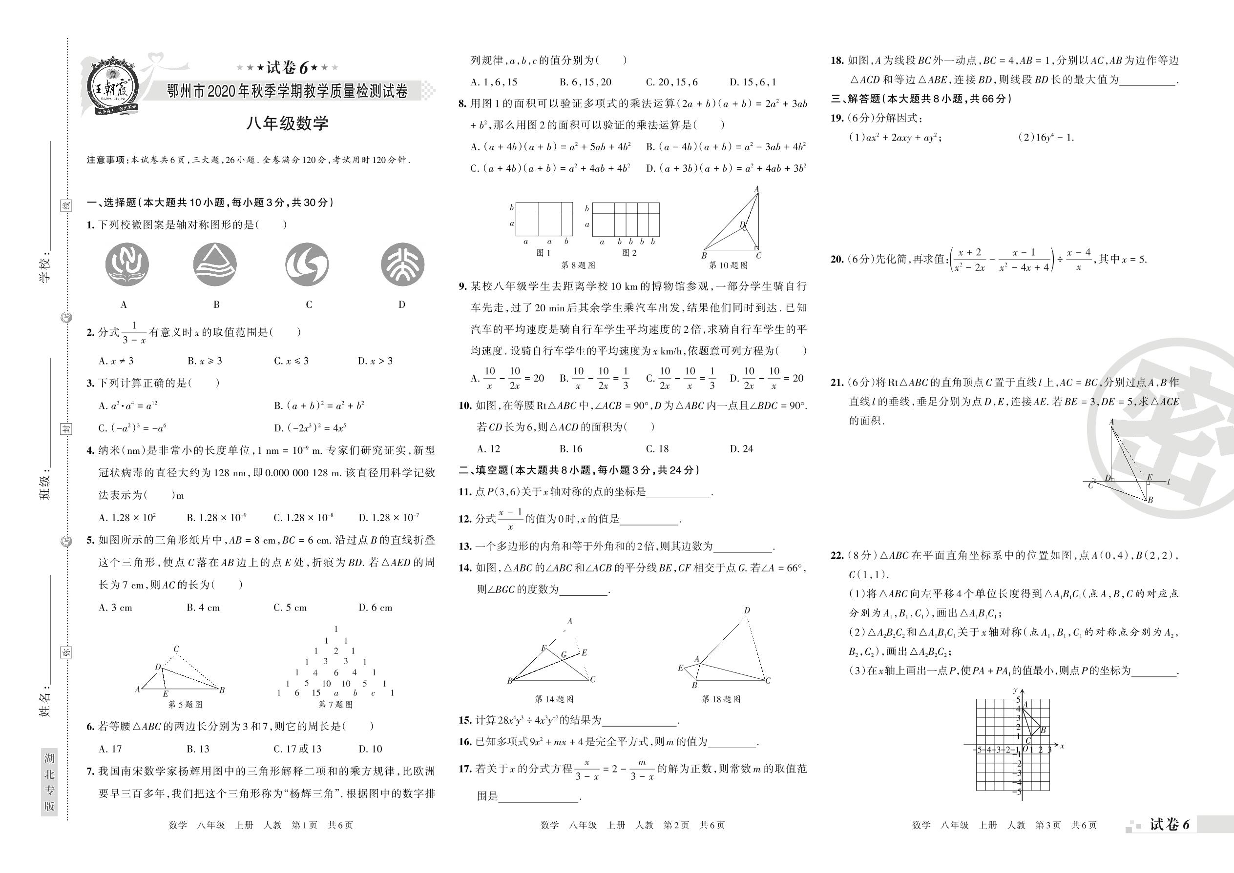 鄂州市2020年秋季学期教学质量检测试卷八年级数学(人教版)【6】