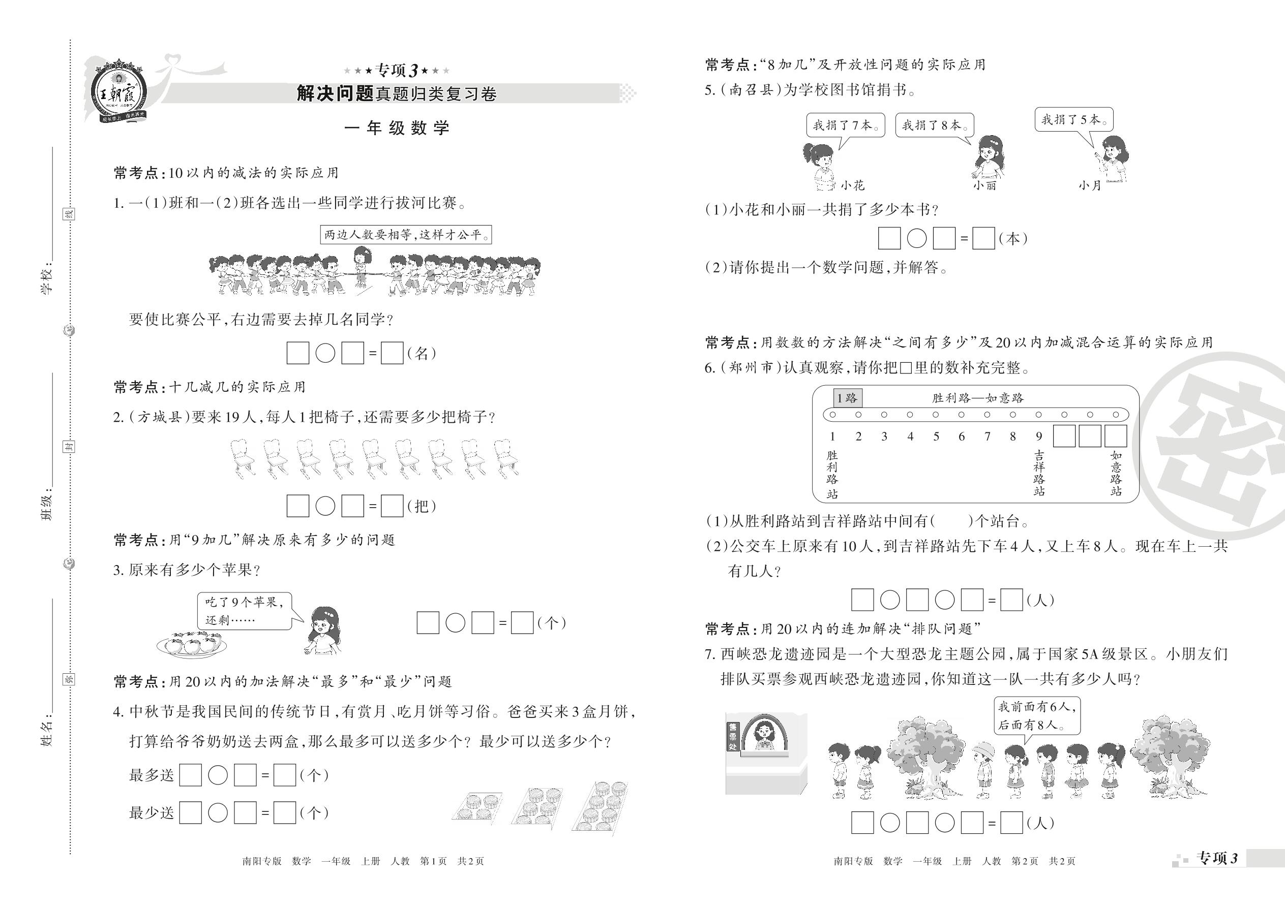 王朝霞期末专项卷——解决问题真题归类复习卷一年级上册数学(人教版)_R211224145004765【3】