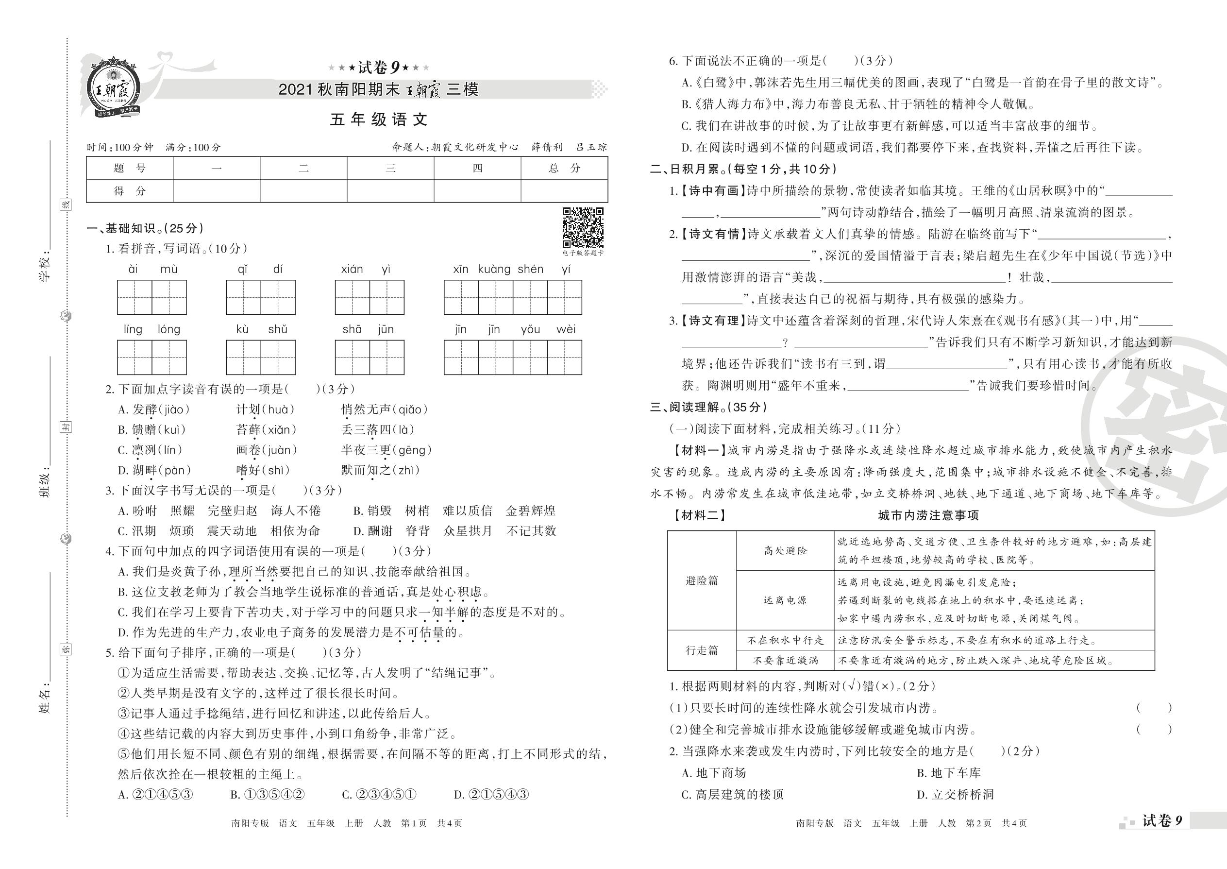 王朝霞期末模拟卷五年级上册语文(人教版)_R211224150728784【9】