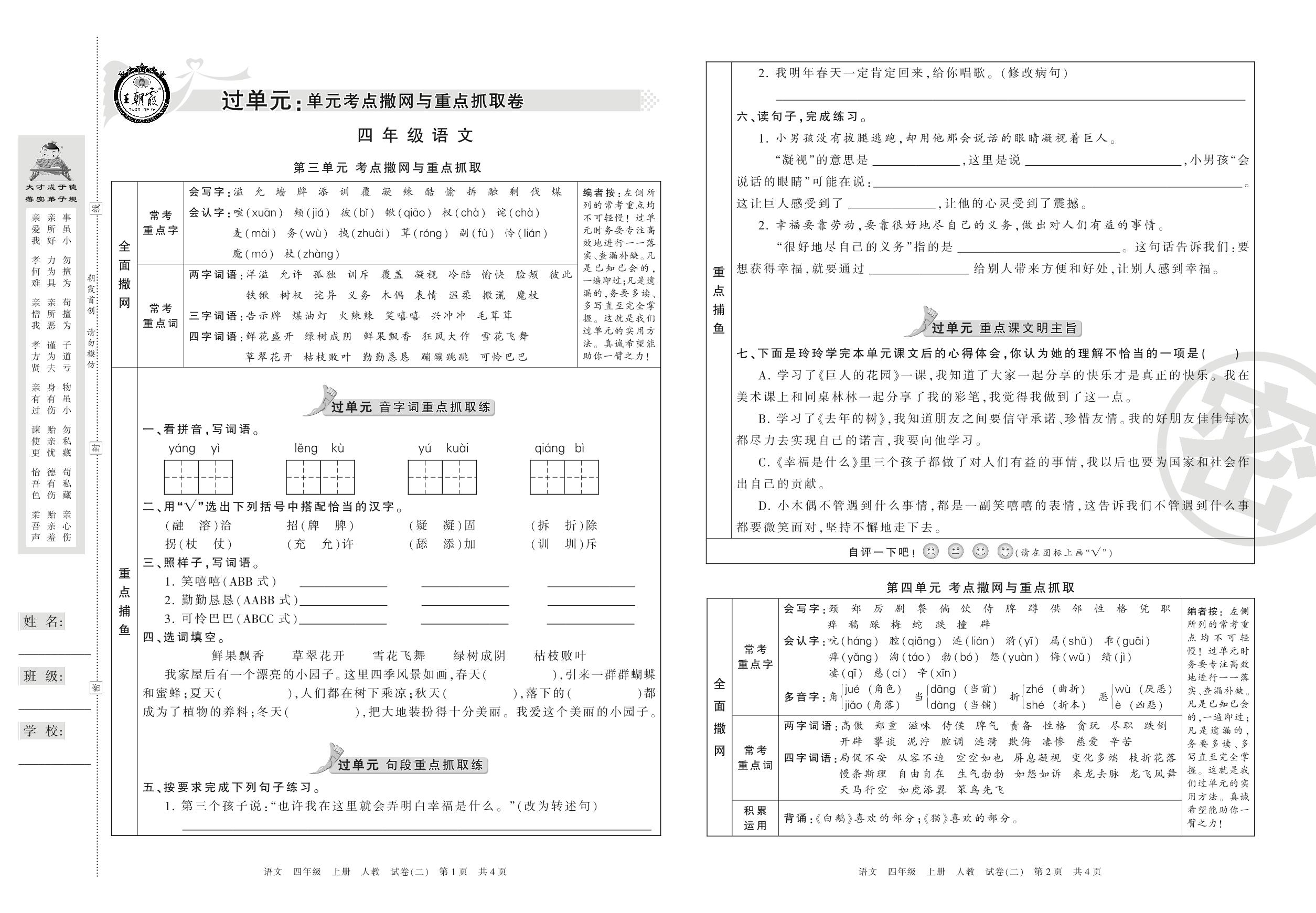 王朝霞期末过单元四年级上册语文(人教版)_R210801215619【2】