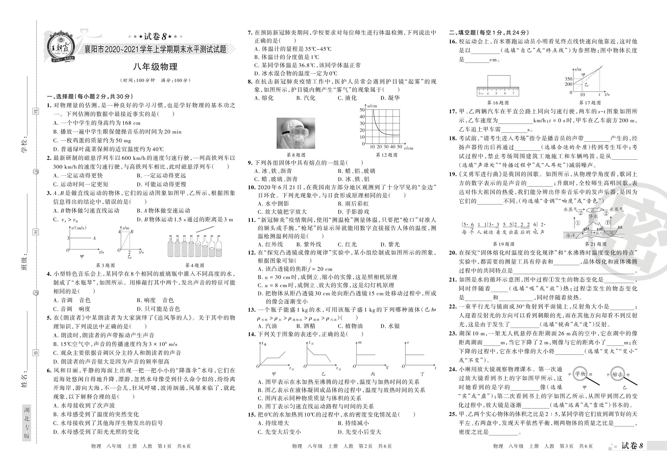 襄阳市2020~2021学年上学期期末水平测试试题八年级物理(人教版)【8】
