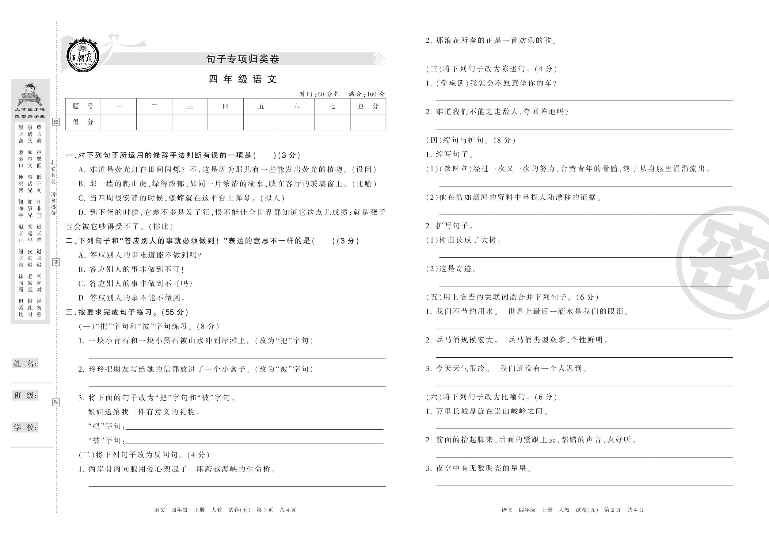 王朝霞期末专项卷四年级上册语文(人教版)_R210801215641【5】
