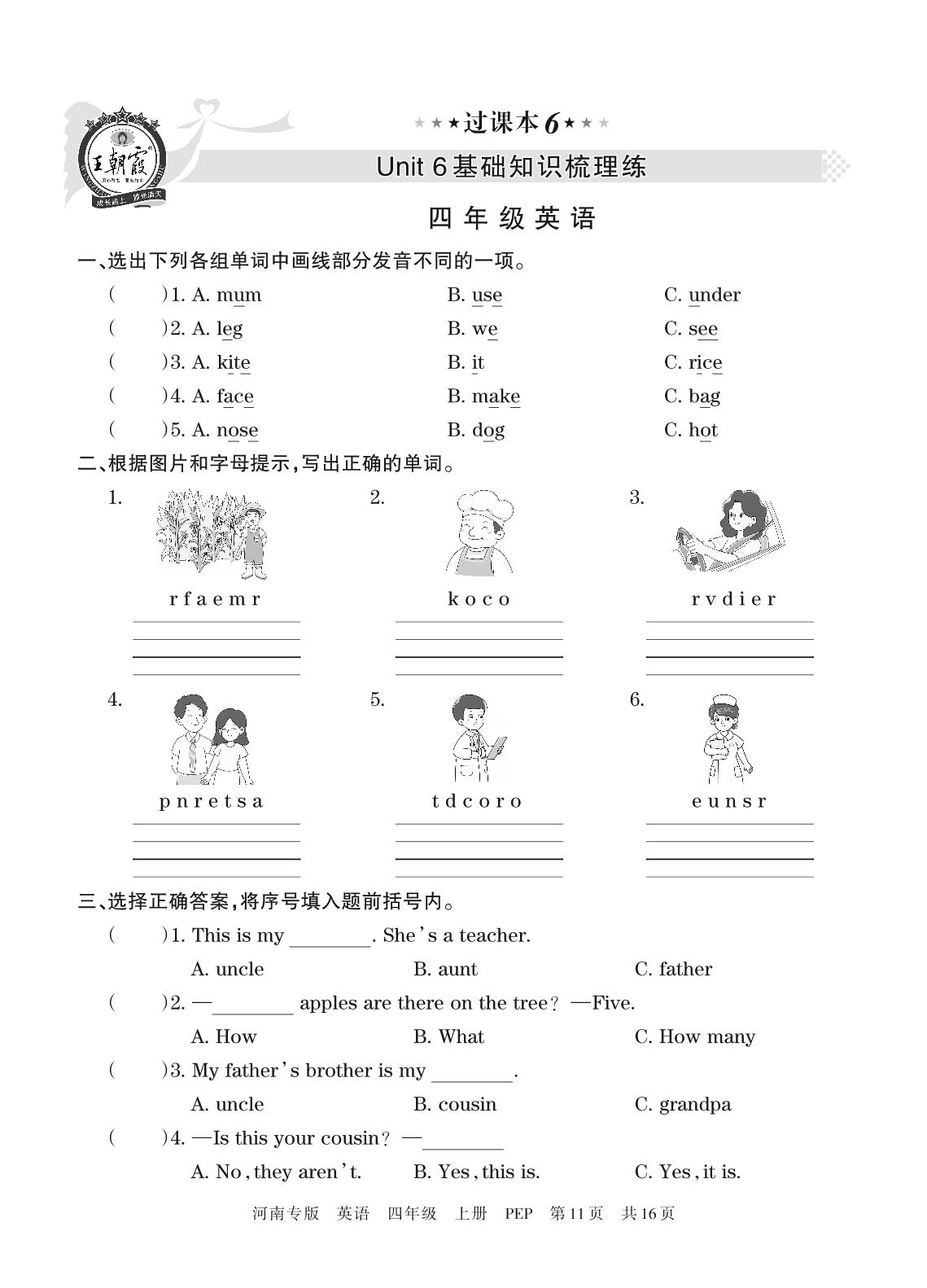 王朝霞期末过课本——Unit 6基础知识梳理练四年级上册英语(人教PEP版)_R211224151309554【6】