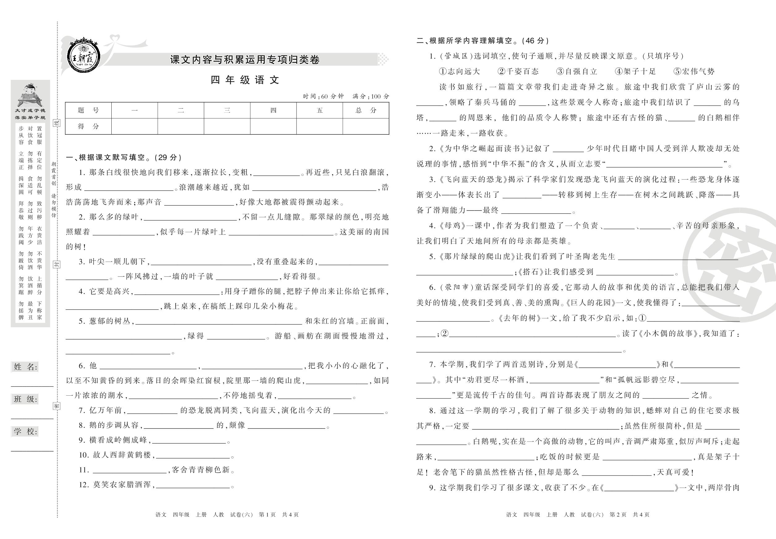 王朝霞期末专项卷四年级上册语文(人教版)_R210801215646【6】