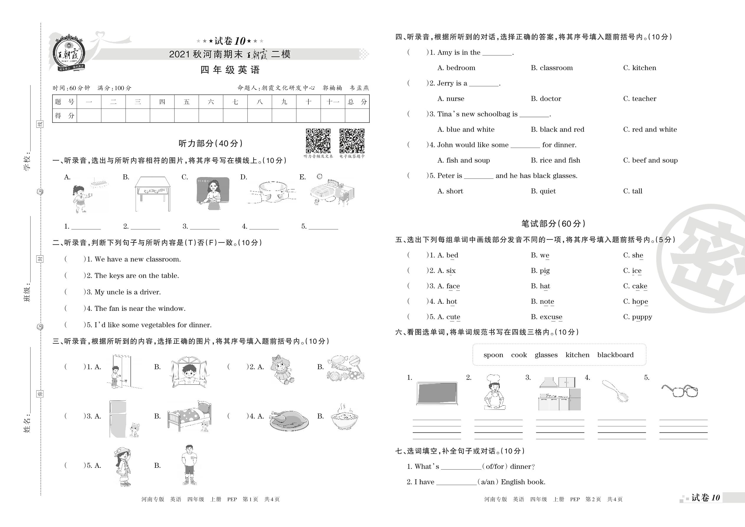 王朝霞期末模拟卷四年级上册英语(人教PEP版)_R211224151310946【10】