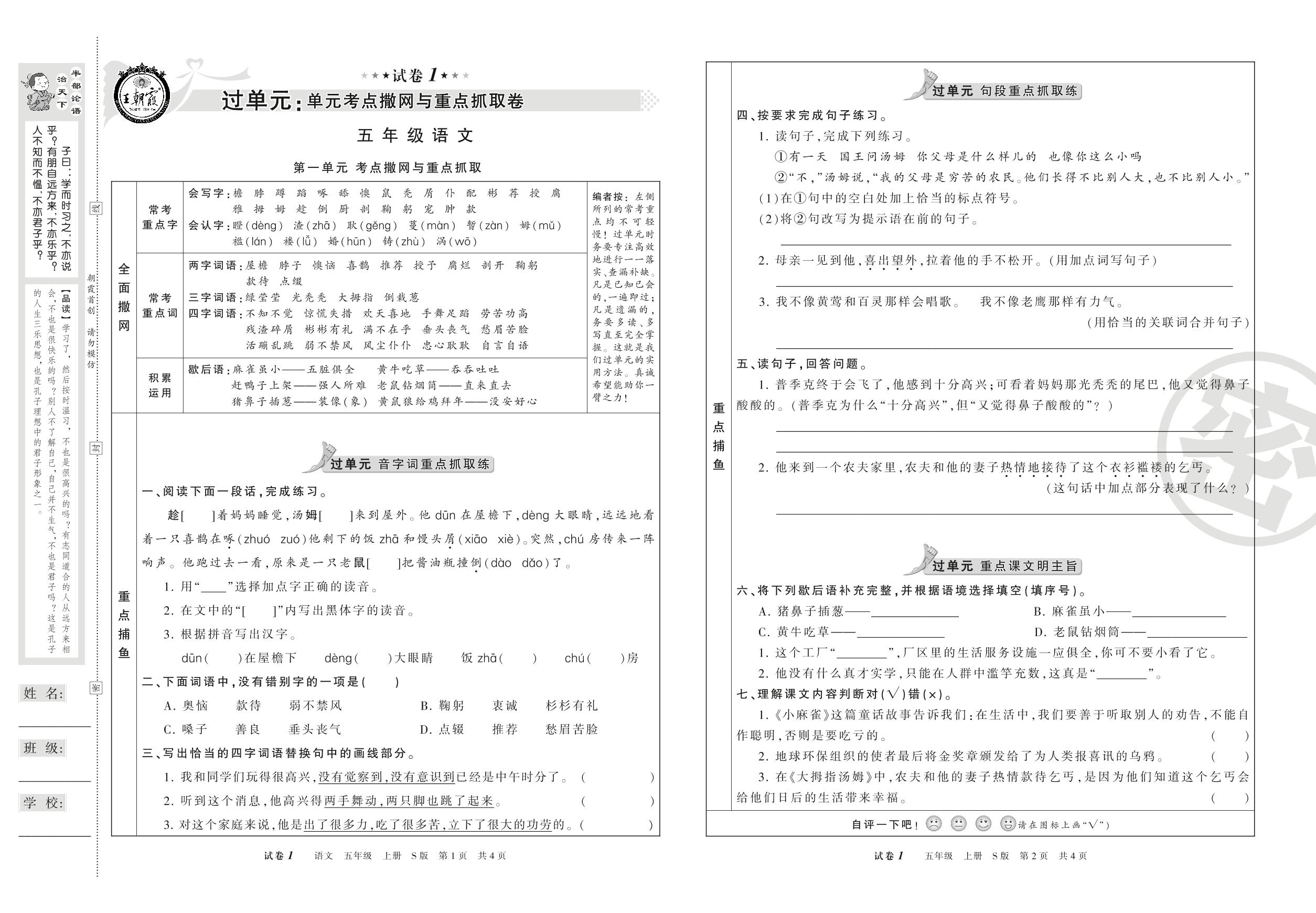 王朝霞期末专项卷五年级上册语文(S版)_R210801215713【1】