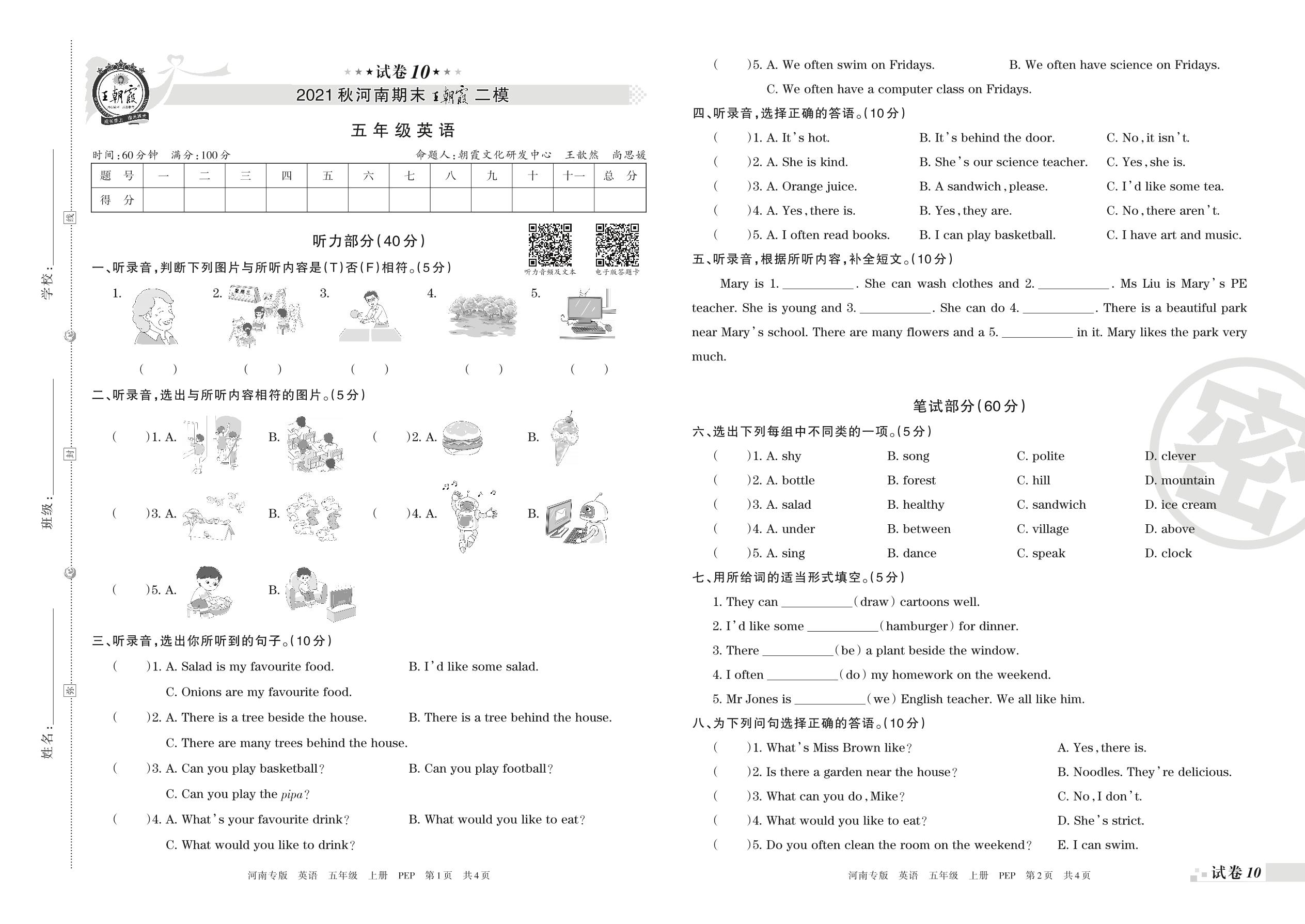 王朝霞期末模拟卷五年级上册英语(人教PEP版)_R211224151734103【10】