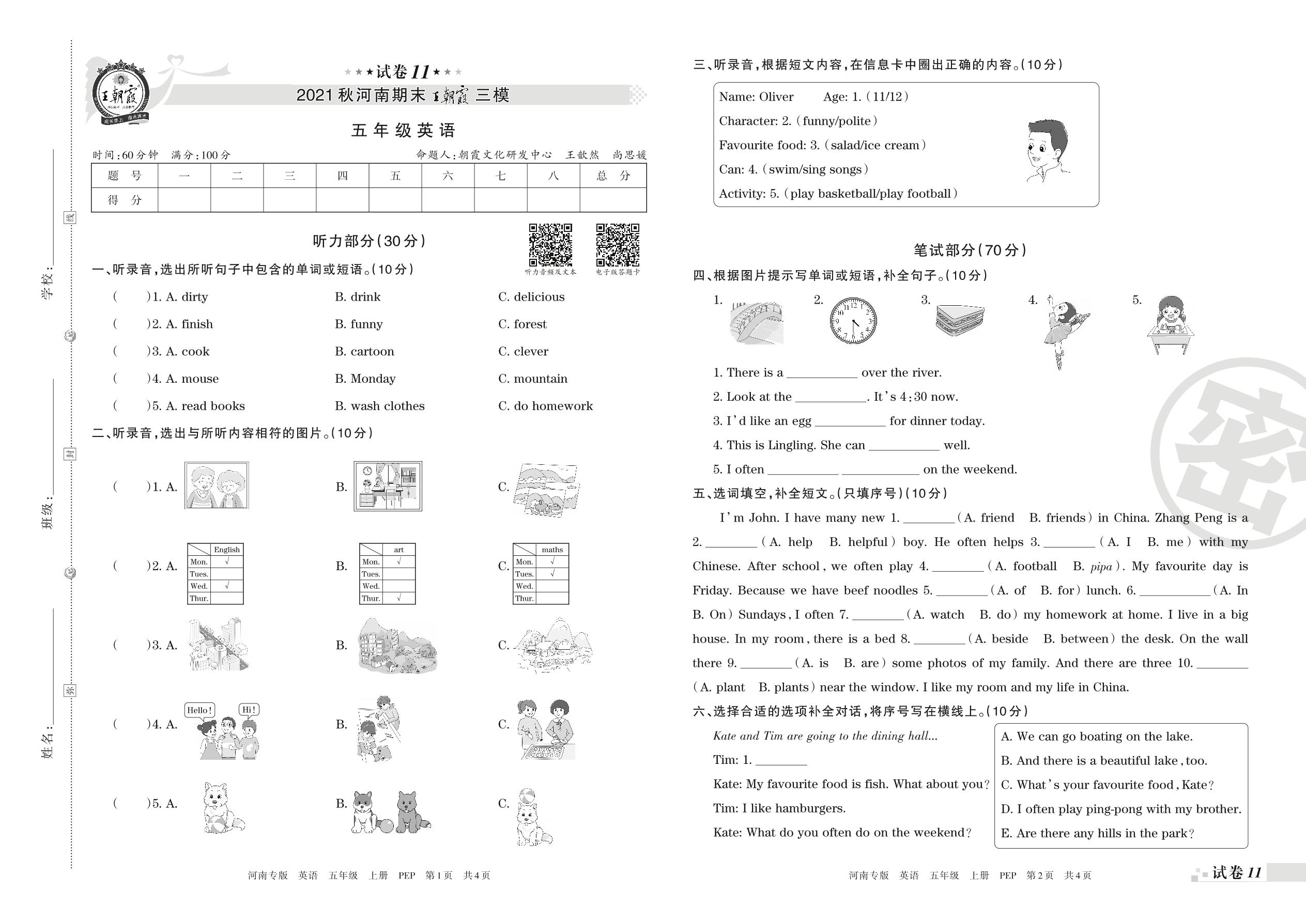 王朝霞期末模拟卷五年级上册英语(人教PEP版)_R211224151734778【11】