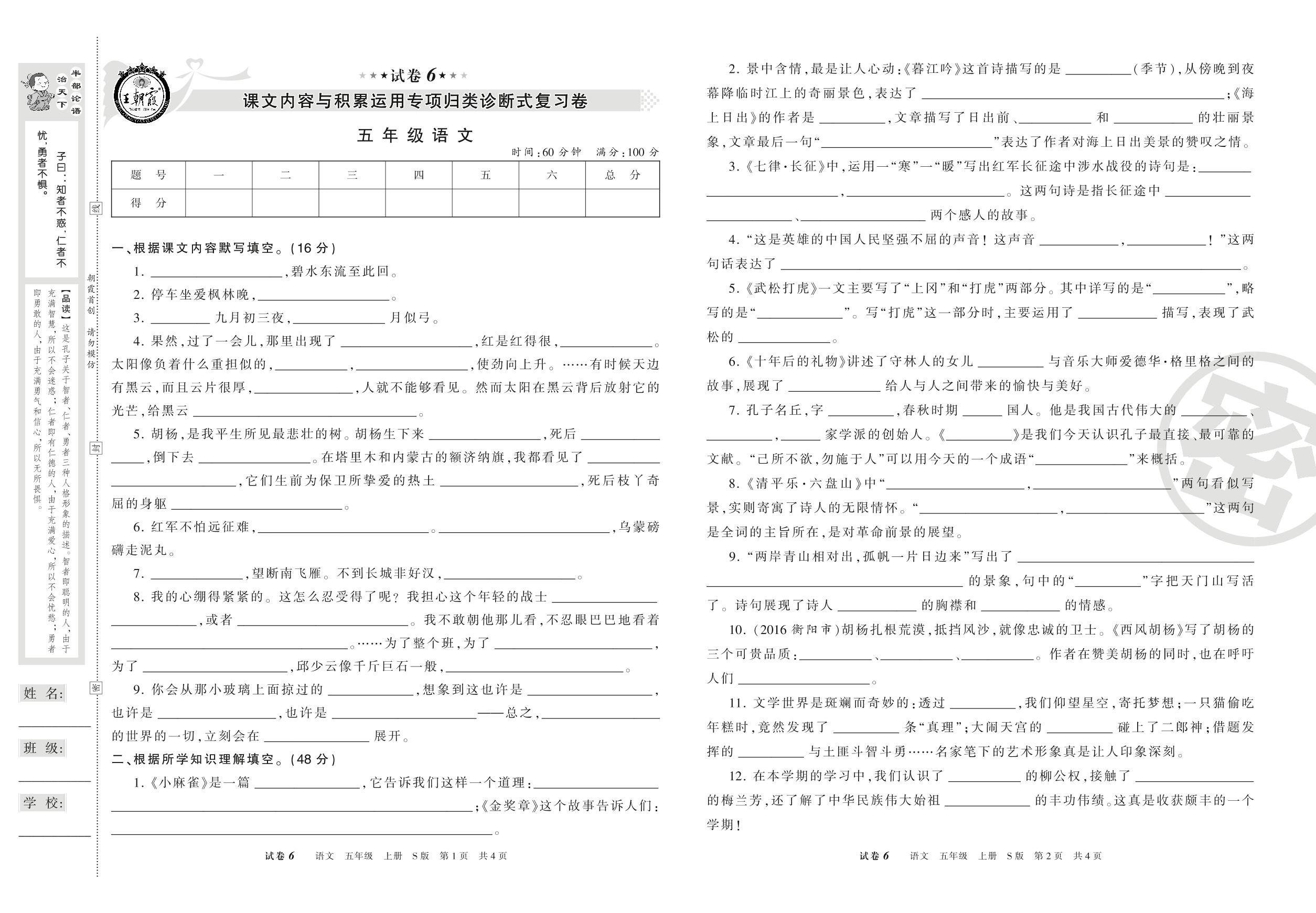 王朝霞期末专项卷五年级上册语文(S版)_R210801215743【6】