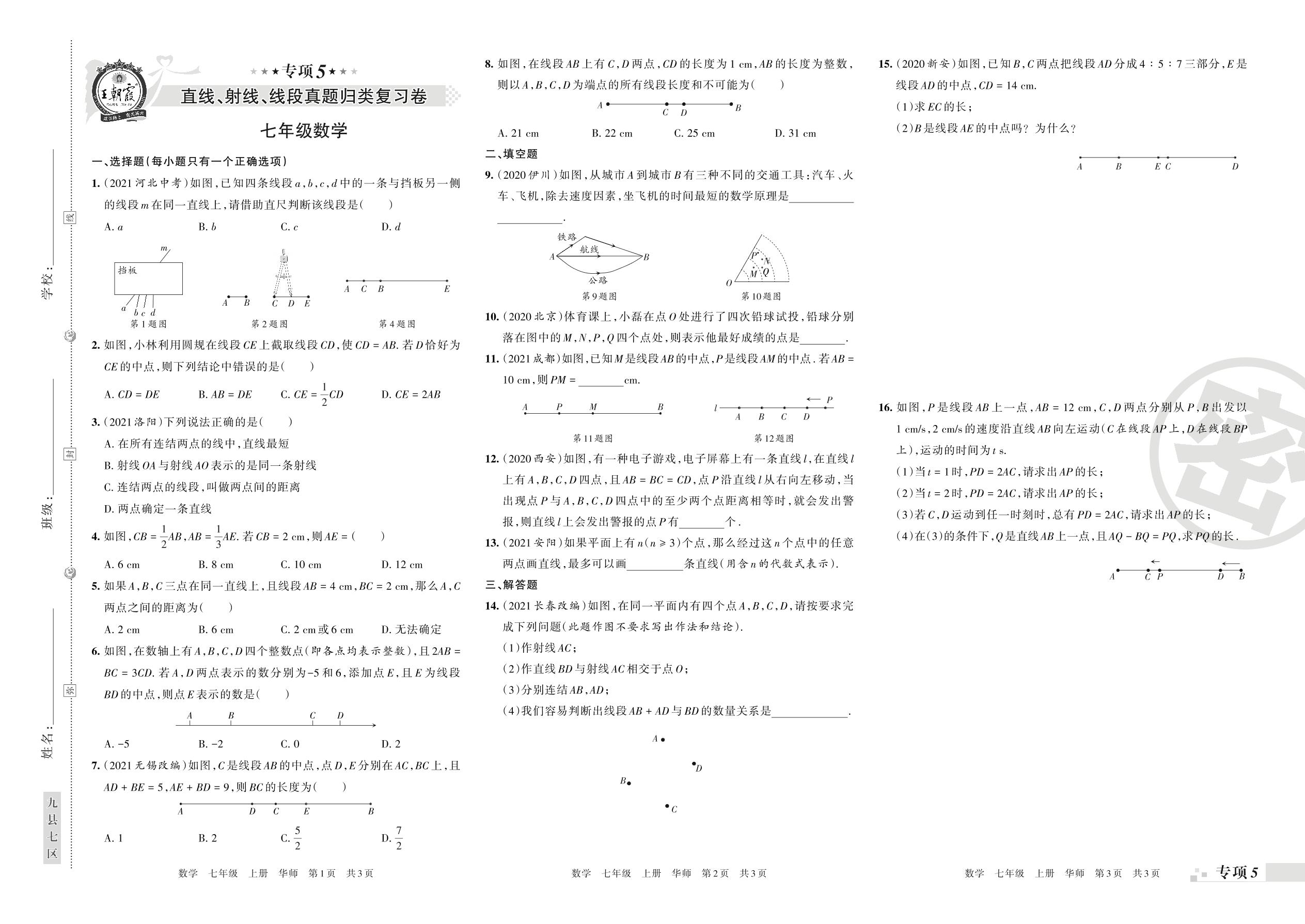 王朝霞期末专项卷——直线、射线、线段真题归类复习卷七年级上册数学(华师版)【5】