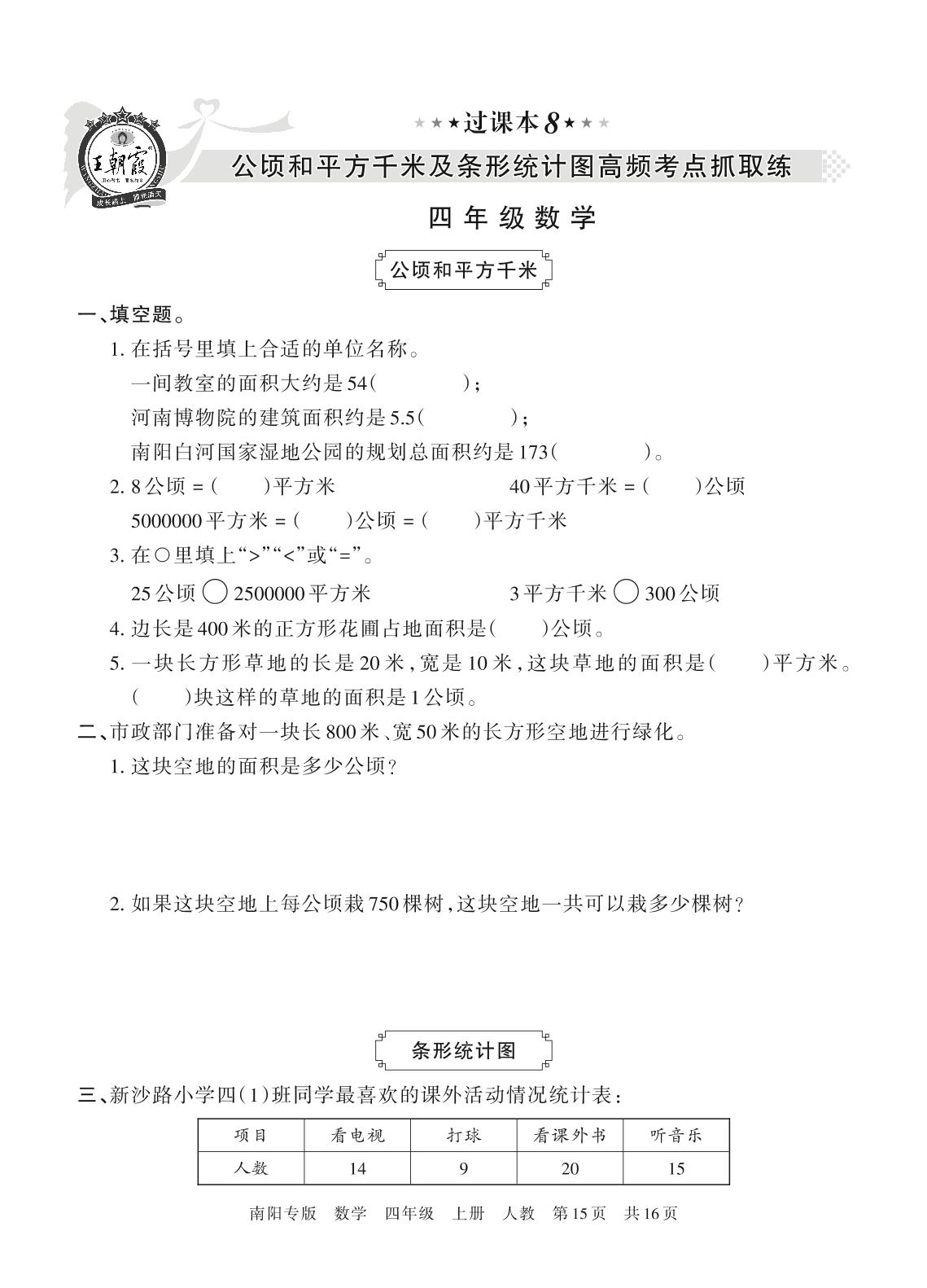 王朝霞期末过课本——公顷和平方千米及条形统计图高频考点抓取练四年级上册数学(人教版)_R211224154852607【8】