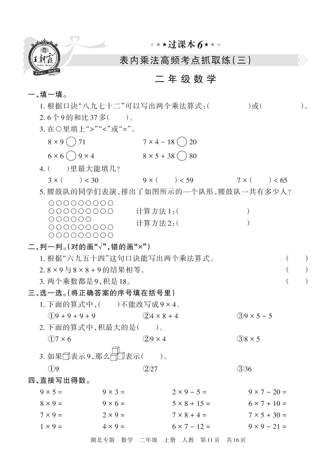 王朝霞期末过课本——表内乘法高频考点抓取练(三)二年级上册数学人教版【6】