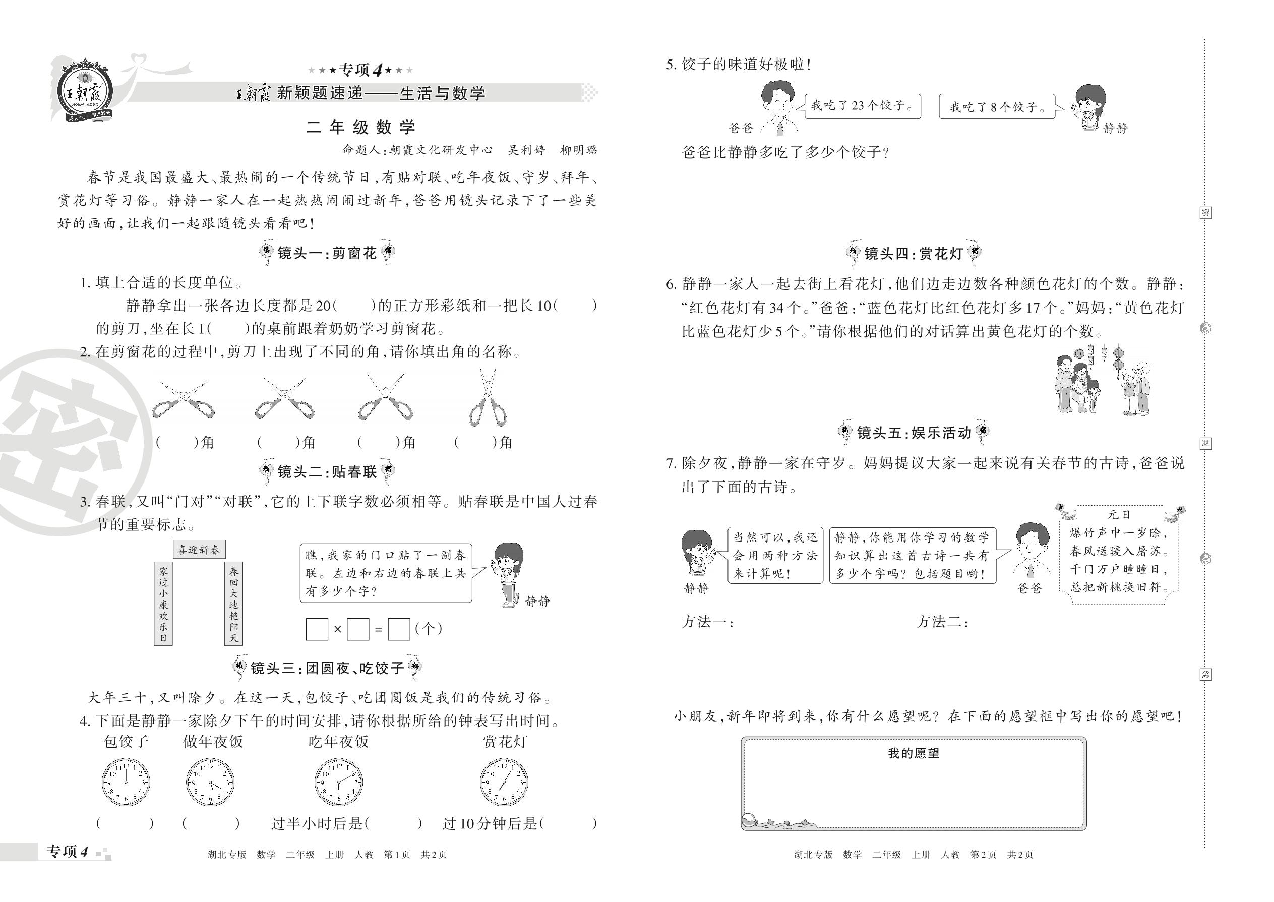 王朝霞期末专项卷——新颖题速递:生活与数学二年级上册数学人教版【4】