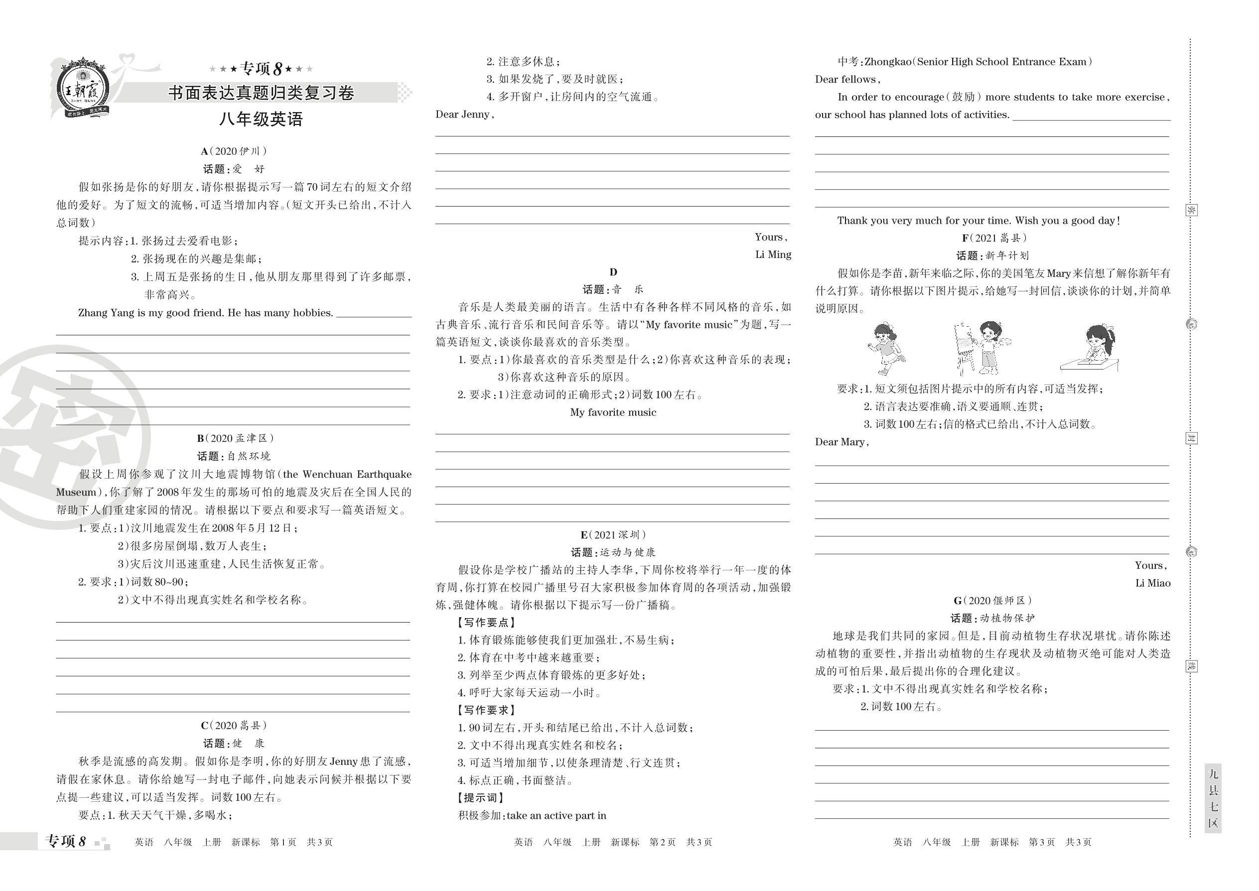 王朝霞期末专项卷——书面表达真题归类复习卷八年级上册英语(新课标版)_R211224155635995【8】