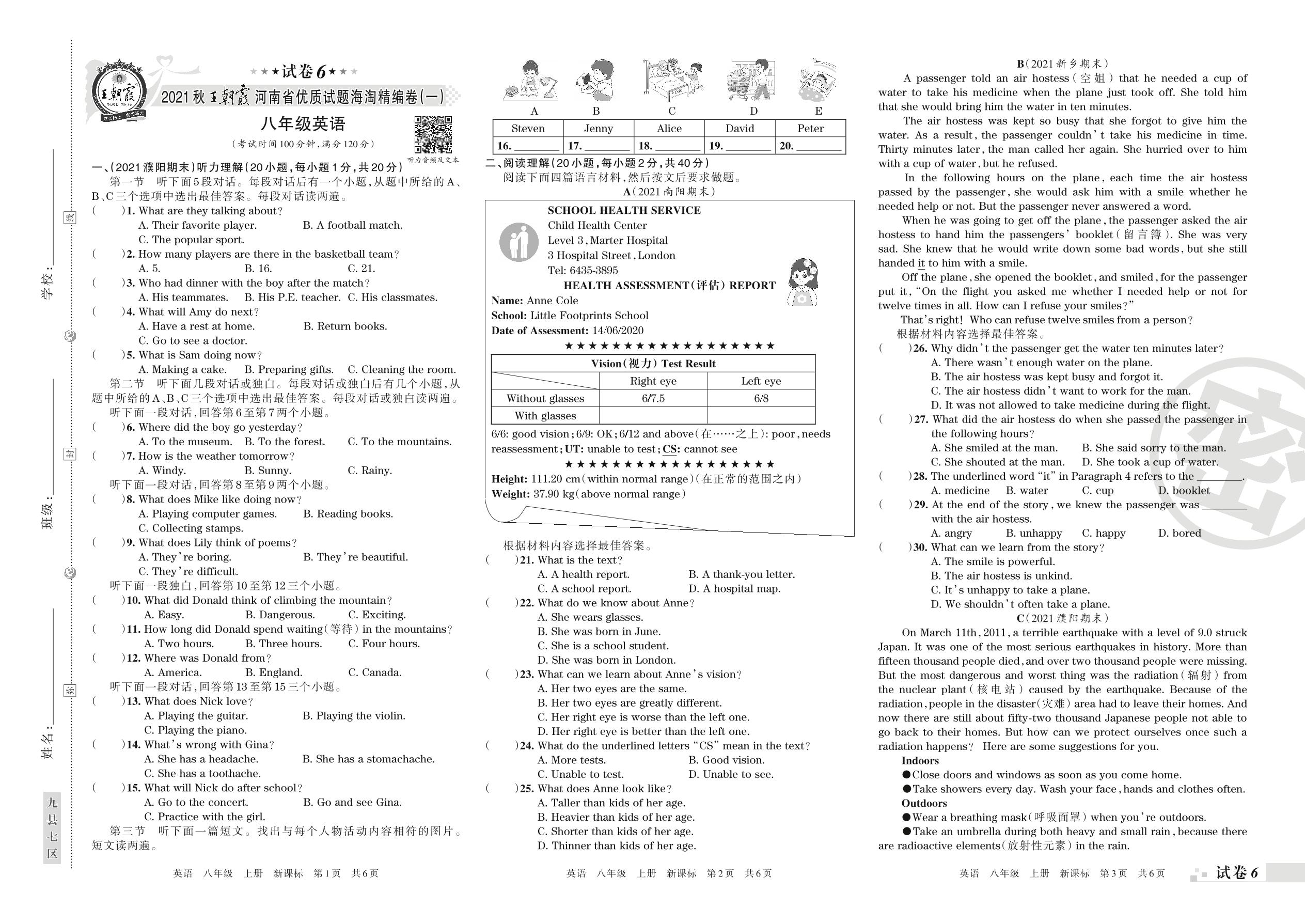 2021秋王朝霞河南省优质试题海淘精编卷(一)八年级英语(新课标版)【6】